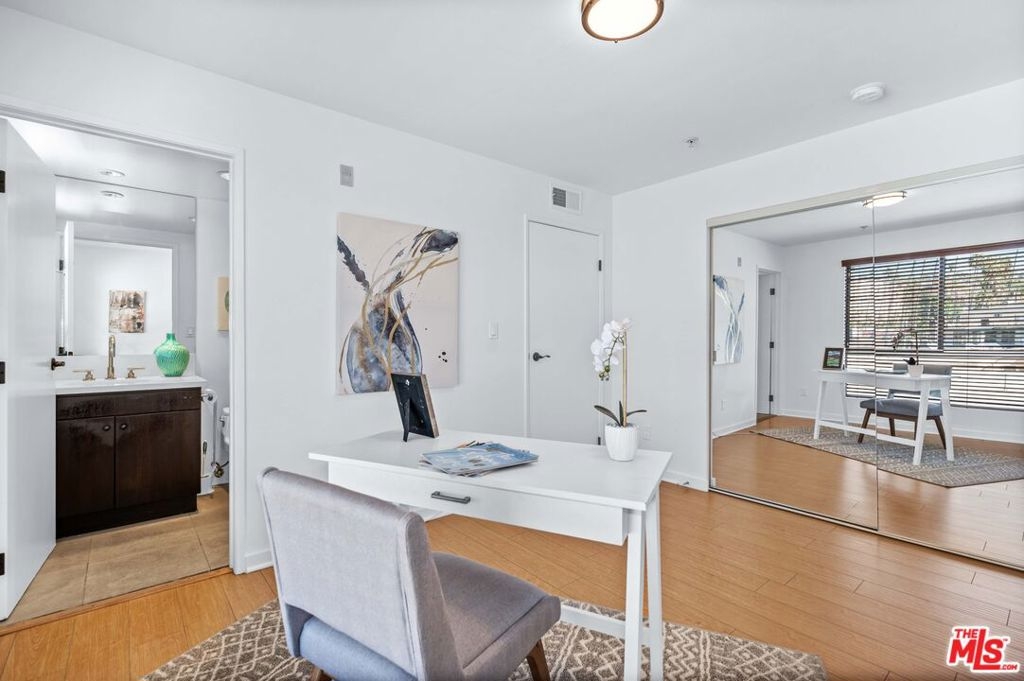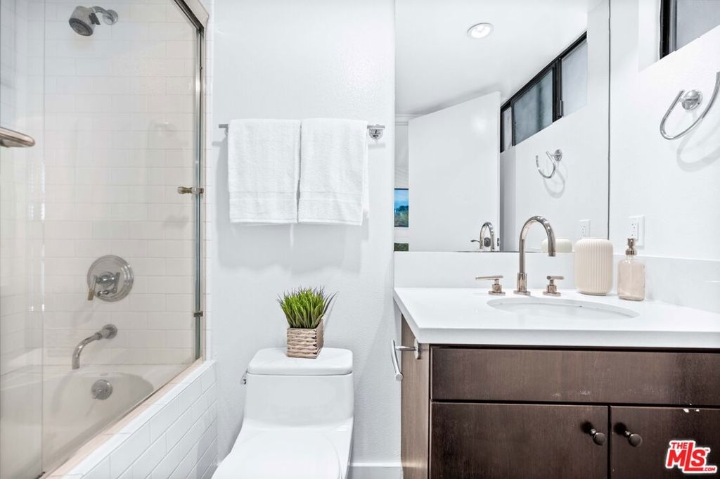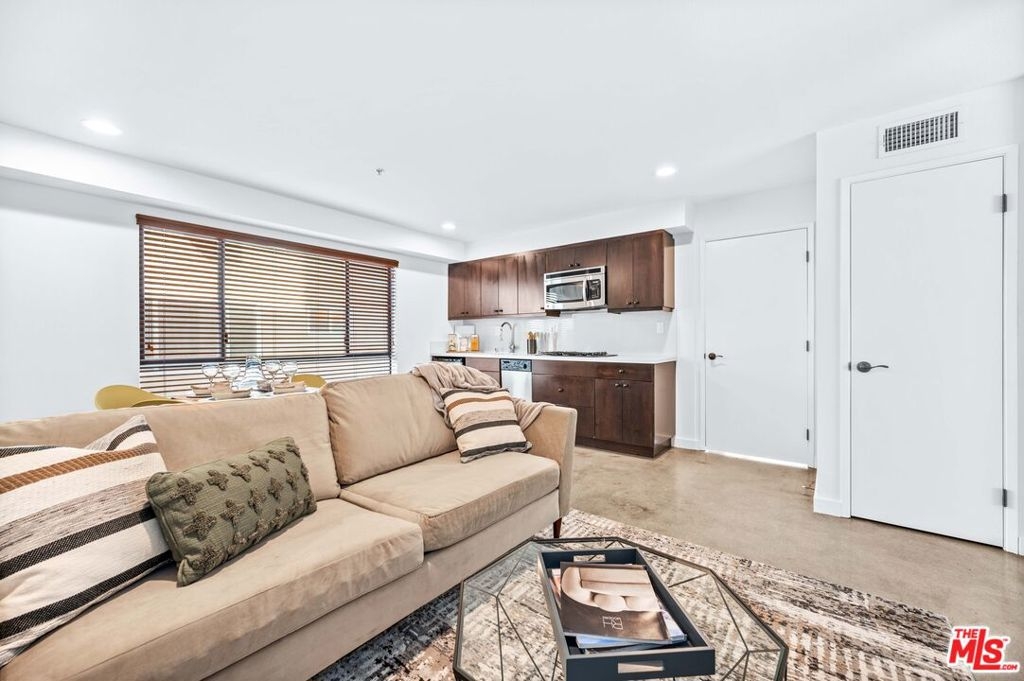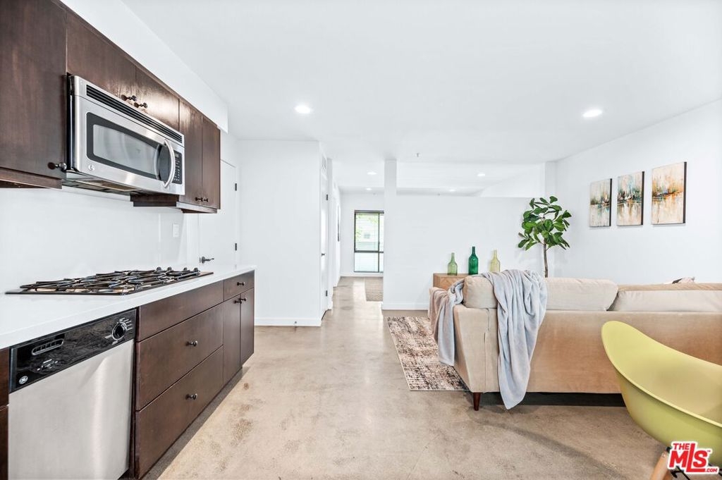 Modern, stylish and thoughtful floorpan with a must see roof top deck with views of Hollywood in a 5-star location. This unit is unique in that the 1st floor bedroom is ostensibly an A.D.U. with modern concrete flooring. The upstairs has been updated with new hardwood flooring along with updating recessed lighting, light switches, door knobs, hinges, and water fixtures. It is a front facing unit with exquisite natural lighting and views of the city. Great outdoor space on every level with large balcony's and huge rooftop deck to enjoy Los Angeles living at its best. The kitchen has custom cabinets, stainless steel appliances, quartz counters, modern backsplash that has all been updated. It is a very large unit that is 2,330 sq. ft. Each bedroom has their own ensuite bath and main bedroom with a large walk-in custom closet. You will feel like you are in the center of the city with iconic views of Hollywood Boulevard from the huge rooftop deck. Front unit with spectacular views from everywhere, outdoor living and dining areas and media cabinet. Partially covered which allows for the media center to feel like an extra living space. Near the best shopping, restaurants, and nightlife - Runyon Canyon, Hollywood Bowl, Grauman's Theater, Stars on the Walk of Fame. The Dolby Theater (Academy Awards) is just stepping away. LA Living at its finest