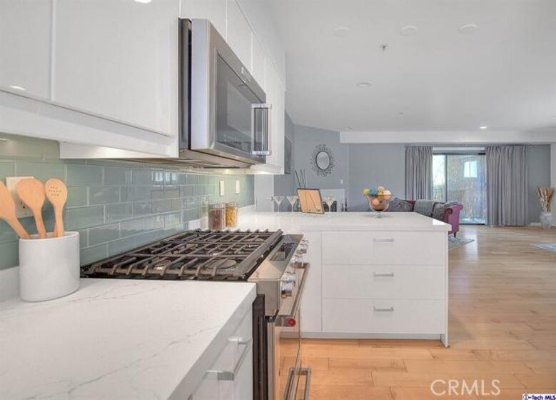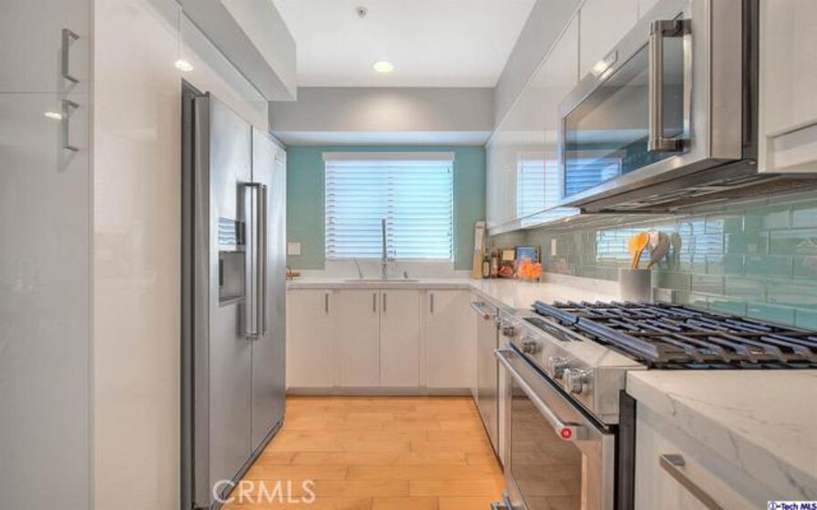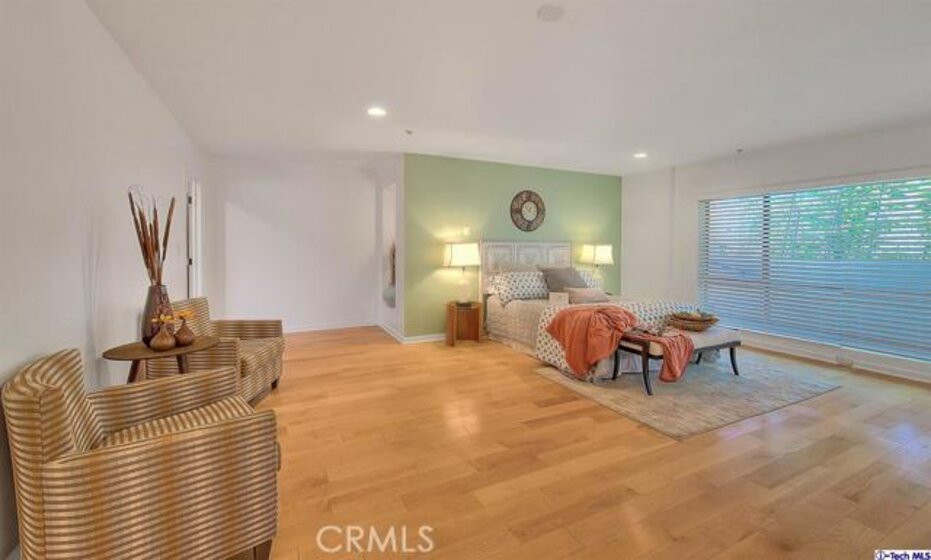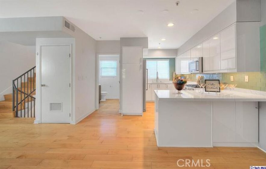 Sleek, contemporary minimalism, neutral colors, tranquil lighting, flexible open floor plan, and a gorgeous kitchen in the BEST Hollywood location. Hardwood floors sweep through the open living room, kitchen, and dining area. Large glass sliders showcase the amazing view and open to the balcony with stairs to the private rooftop terrace. The kitchen has custom white cabinets, stainless steel appliances, stunning quartz counters, tranquil mint tile backsplash, and a large eating bar. Private quarters are very spacious - 3 bedrooms - 2 of which are masters, each with their own ensuite bath, and a first-floor guest suite which works well as a private workspace/office/gym and with a large walk-in custom closet. Watch the stars in the sky & the stars on Hollywood Boulevard from the huge rooftop terrace! It has everything - spectacular views from 2 sides, furnished outdoor living and dining areas, wet bar, fireplace, and media cabinet. Partially covered with curtains and screens for privacy! Near the best shopping, restaurants, and nightlife - Runyon Canyon, Hollywood Bowl, Grauman's Theater, Stars on the Walk of Fame. The Dolby Theater (Academy Awards) is just steps away. True LA Living at its finest! Great Investment Opportunity with significant rental income (Last rent was $5100 monthly). The Unique layout is ideal for an owner occupant to live in and rent the lower level as an ostensibly potential ADU or 2nd bedroom which offers a private entrance. Enjoy the 3D VIRTUAL TOUR. https://my.matterport.com/show/?m=xnDA1J6F125&brand=0