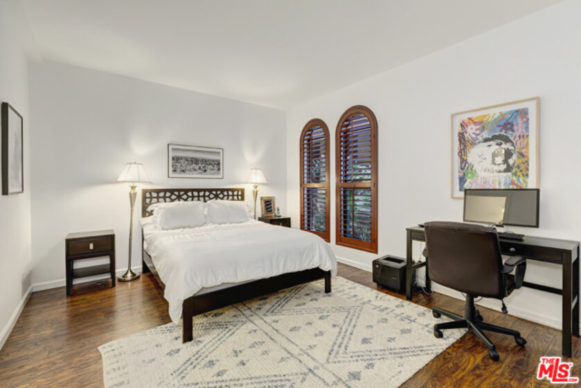Escape the LA concrete jungle and come home to a building reminiscent of a quaint Spanish town. This end unit has been tastefully upgraded with a new kitchen, bathrooms, flooring, and dining area all beautifully appointed by a professional designer. Both bedrooms are very generous in size and are cleverly positioned on either side of the unit, complete with their own full bathroom. Upstairs is a furnished shared rooftop deck with panoramic views of Hollywood. Enjoy local favorites Osteria Mozza, Providence, Raos, Trois Mec, Cat & Fiddle, Kali, Sightglass Coffee, and Tartine. With popular neighborhoods like WeHo, Larchmont, and Beverly Grove only a short distance away. HOA allows washer/dryer to be installed in the unit. EQ insurance included in HOA fees.