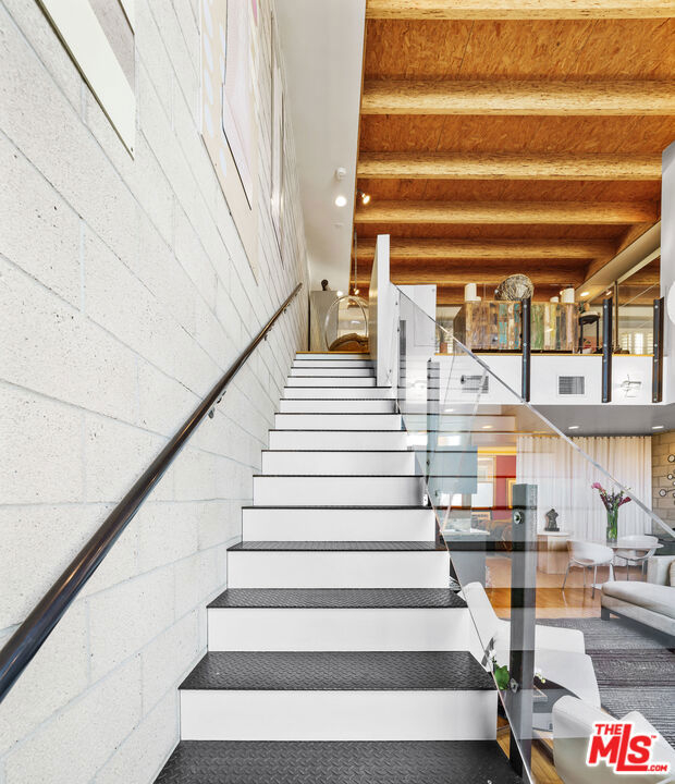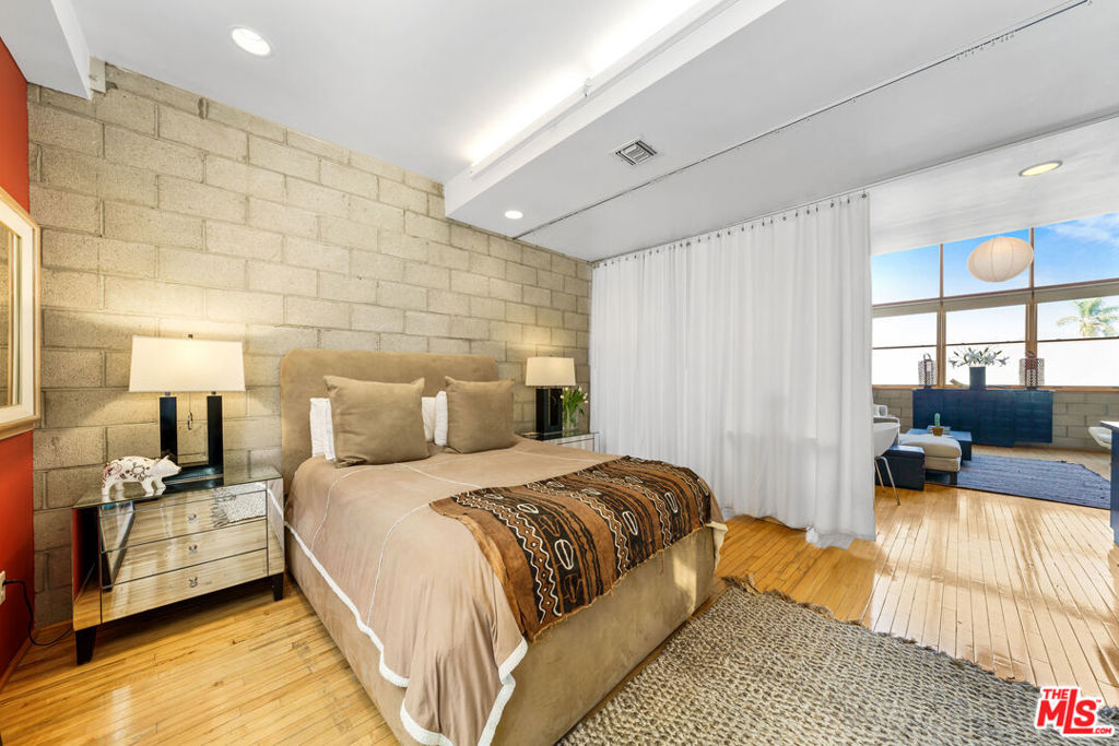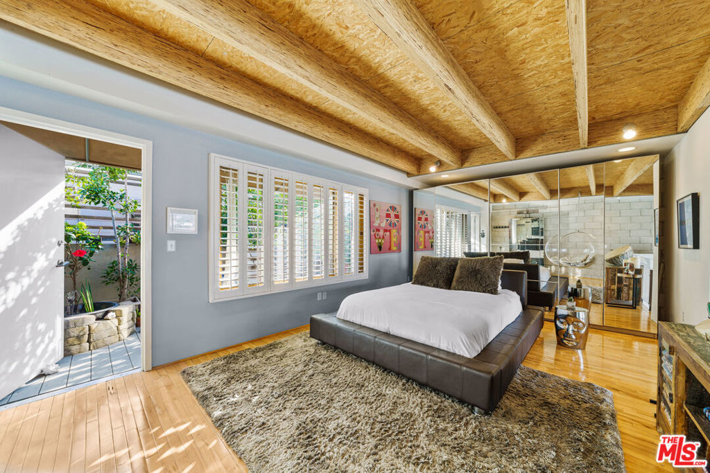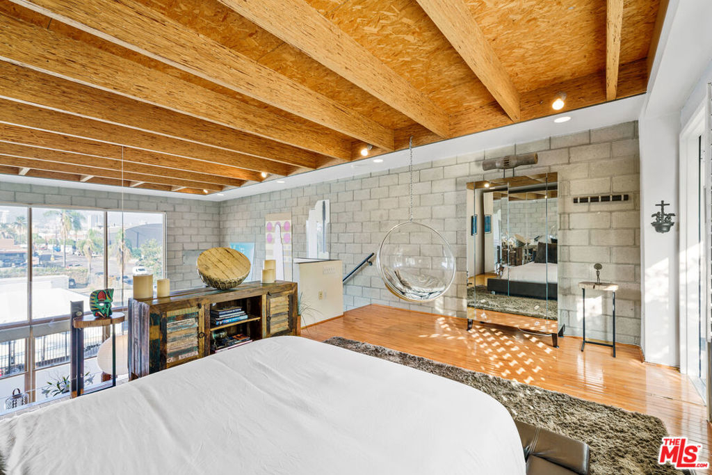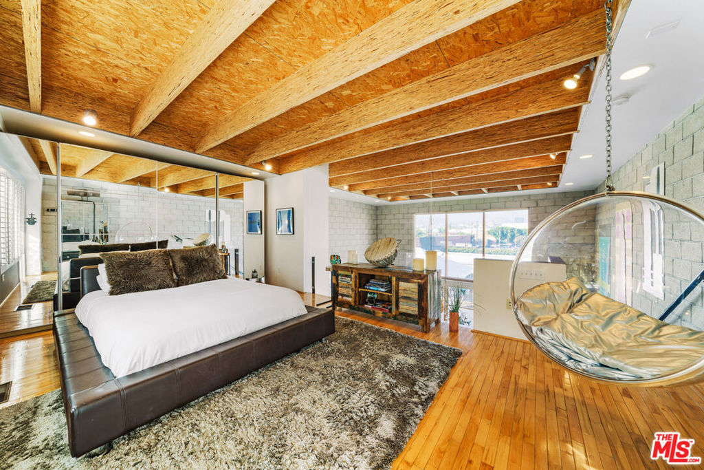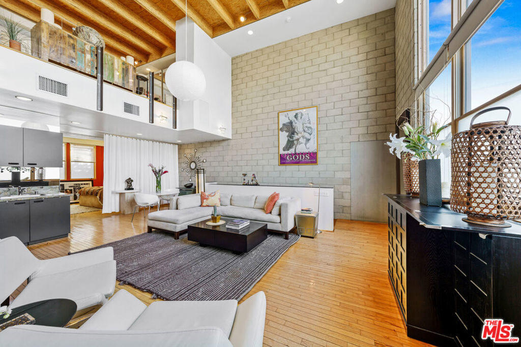 Situated in one of the most centrally located neighborhoods in LA, this spacious, creative, architectural Live/Work loft sits Hancock Park adjacent, boasting 2 BR/1.5 BA. Open concept stretches across 3 levels, accentuating light, space and contemporary design. Maple hardwoods, paired with 16' high double insulated wood frame windows and 24' high beam ceilings create a juxtaposition of warmth against exposed cinder block walls. The balcony on the upper level offers private outdoor space. Amazing views of the Hollywood Hills, and Hollywood sign. The 4 car garage, (approx. 600 additional Sqft) as intended by developer, is being used as a workspace with its own back patio and separate entrance. Perfect for an art studio. Units are rarely available in this 10-unit, gated, secure building. Walk to Larchmont Village, Osteria Mozza, Cafe Gratitude, Kali, Osteria Momma, Golds Gym, Pavillions & Paramount Studios. The best of Hollywood, Larchmont Village & the Melrose Strip!