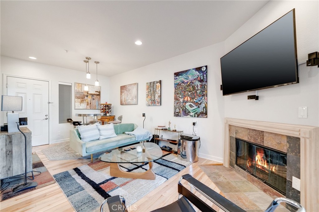 This glamorous condo in Hollywood is the perfect place to call home if you're looking for style, comfort, and convenience. Enter this beautiful 2 bedroom, 2.5 bath home to find a bright and spacious floor plan with natural light flowing in through sliding glass doors leading out to a private balcony. An elegant gas fireplace in the living room provides a cozy atmosphere on those colder days while sliding glass doors lead out to a private balcony for enjoying al fresco dining in the best California weather. A well-equipped kitchen features black stone counters and lots of storage for all your cooking needs. The master suite features a large walk-in closet and en-suite bath with a soaking tub and rainfall showerhead, perfect for relaxing after a long day, and the second bedroom can be utilized as a studio, office space, or for little ones. Even more, laundry in the unit makes washing a breeze! Community amenities include gated underground parking, building security, and a stunning rooftop deck and BBQ area to host friends and family under the stars. You are close to everything Hollywood has to offer – Metro Line, amazing restaurants and nightlife, shopping, and more!