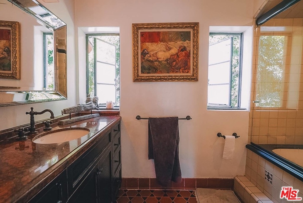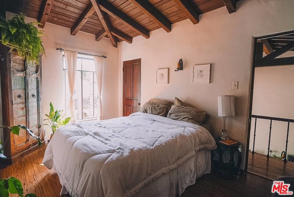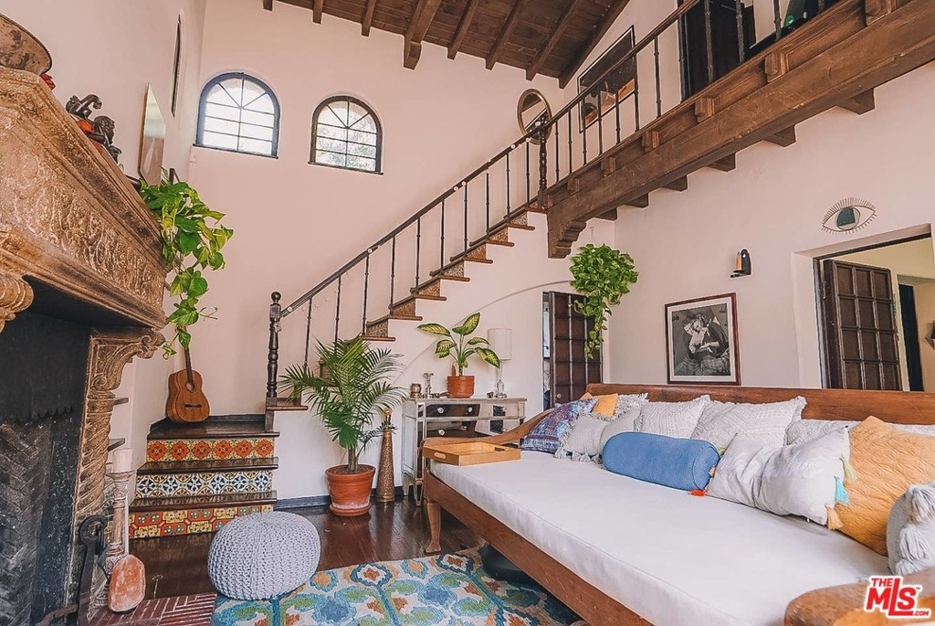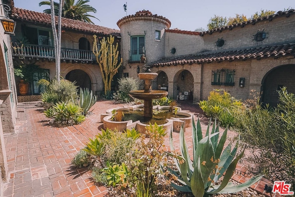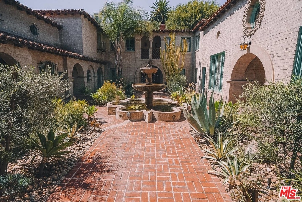 This gorgeous historic two-story Spanish-style townhouse is located in one of the six remaining Spanish revival courtyard buildings. The "El Cabrillo" was designed in the 1920's by Arthur & Nina Zwebell, and commissioned by Cecil B. Demille. Living room has soaring 20 ft ceilings and large engraved stone fireplace, formal dining room, kitchen and private back patio. Kitchen has granite counters, stainless steel Bosch appliances. Central a/c and heat, washer/dryer inside the unit. Walking distance to the Hollywood Bowl, W Hotel Hollywood, Trader Joe's and several theaters, restaurants, clubs and more. On the National Historical Register and is preserved under the Mills Act, which allows significant tax benefits to the owner. One-car garage parking. Seller selects services.