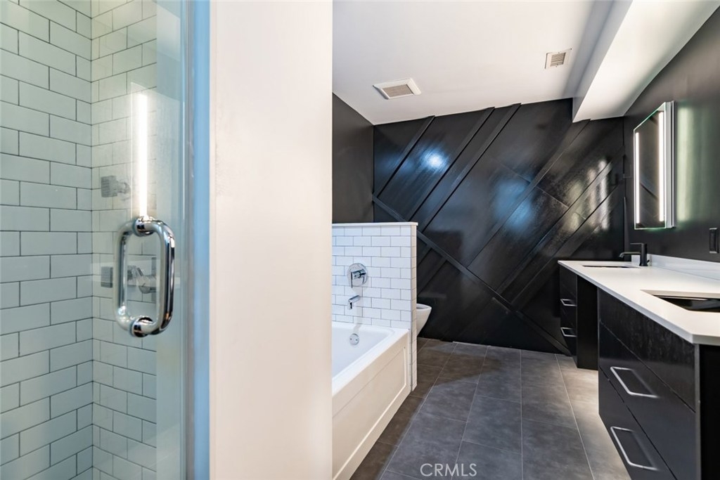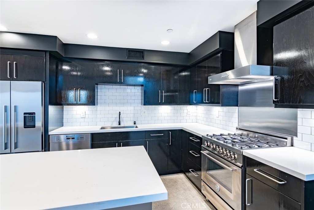 This 2 bedroom, 2.5 bathroom condominium is a contemporary marvel, boasting 1,420 sq ft of space in the heart of Hollywood! Natural light floods the airy space as you enter thanks to skylights overhead and vaulted ceilings for added allure. The kitchen is contemporary and chic, complete with an island, dark wood cabinetry, stainless steel drawers, and an attractive white tile backsplash. But the appliances here are the stars of the show, featuring name brands such as the Fisher and Paykel refrigerator, Bertazzoni stove, Zephyr hood, and Miele dishwasher. The white and black theme is emulated in the bathroom, with a handsome black tile wall that exudes class. On the second floor you’ll find the loft, walk-in closet, and bathroom; while the primary bedroom is on the third floor. Enjoy the dual vanities of the primary bathroom, complete with shower, tub, and an abundance of modern lighting throughout. An included washer and dryer make laundry a cinch, and common tandem parking delivers great ease of access. You’ll appreciate proximity to all the sights, sounds, shopping, and dining of Hollywood.