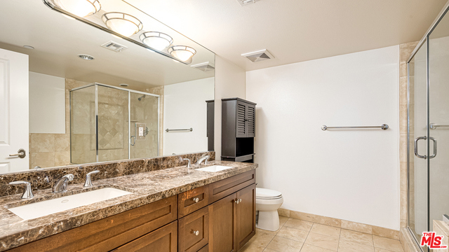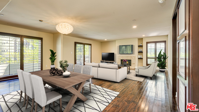Welcoming open floor plan and abundance of light accent this desirable corner front unit. 2 balconies and views of city lights. With Runyon Canyon park steps away, fitness center and Recreation room inn the building plus the convenience of restaurants and Hollywood night life at your disposal -- this unit offers the full package.Huge master suite with walk in closet. Large bathroom with tub and stall shower. Second bedroom is also a generous size. Shoji style barn door makes it an optional second suite. Wide louver Plantation shutters throughout. Large chefs kitchen with a newer appliances and granite counters open to the spacious living/dining combo with gas fireplace.Parking is tandem. Garage includes 11 guest spaces. HOA pays water and includes earthquake insurance.Private storage. Controlled access building.