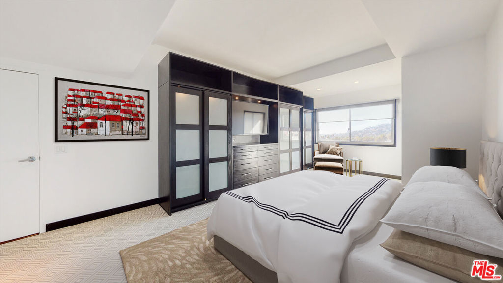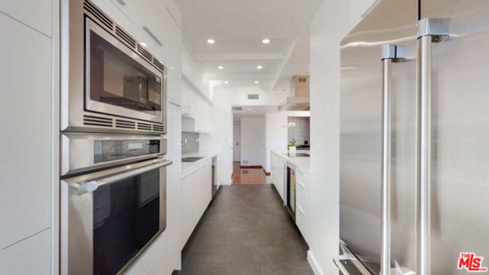 This beautiful condo is located in a prime area of West Hollywood near Runyon Canyon. Walk into this 8th floor CORNER UNIT and you will be impressed by the light filled living space and the spectacular views this southwest facing unit has to offer. The kitchen has been beautifully remodeled by celebrity designer Luigi Irauzqui . The large Calacatta waterfall stone counter island is another prime focal point of the unit along with the stunning Walker Zanger backsplash. The kitchen is equipped with Miele and Thermador appliances which compliments the Boffi cabinets. Both bathrooms have intricate stone tile on the walls complimented by modern fixtures. In unit washer and dryer. Building has full amenities.