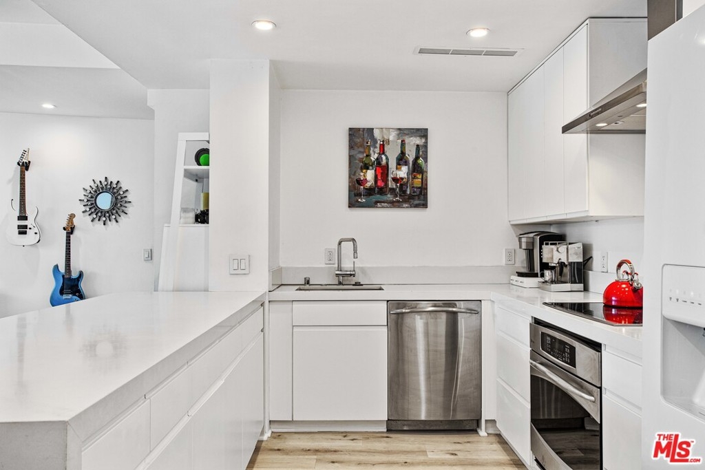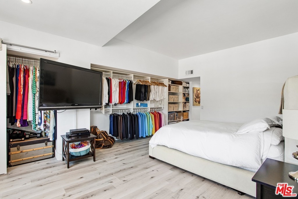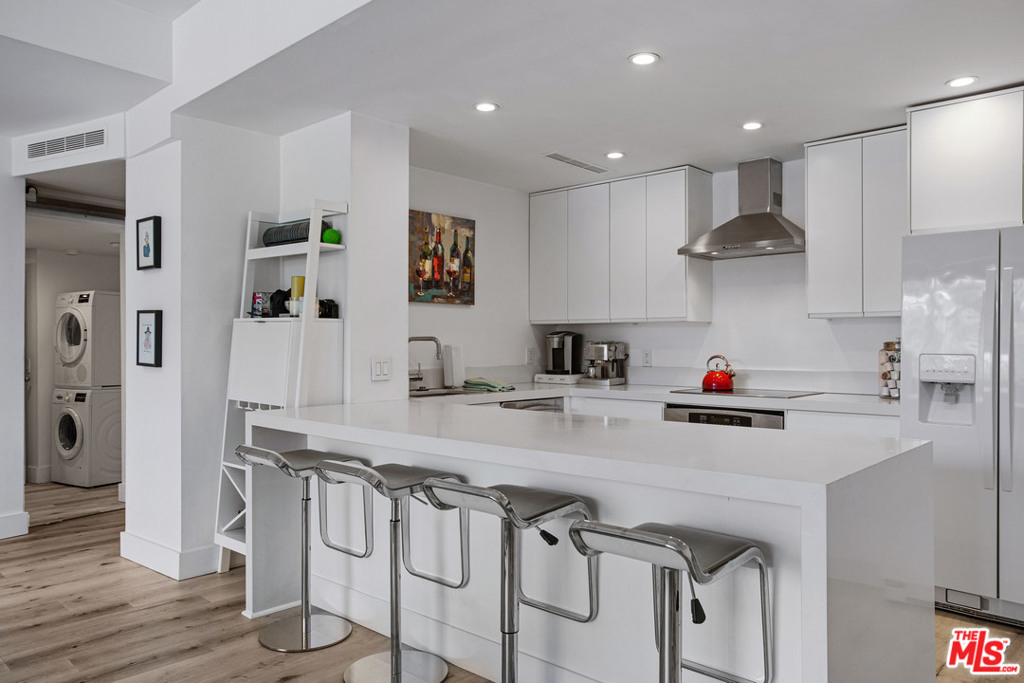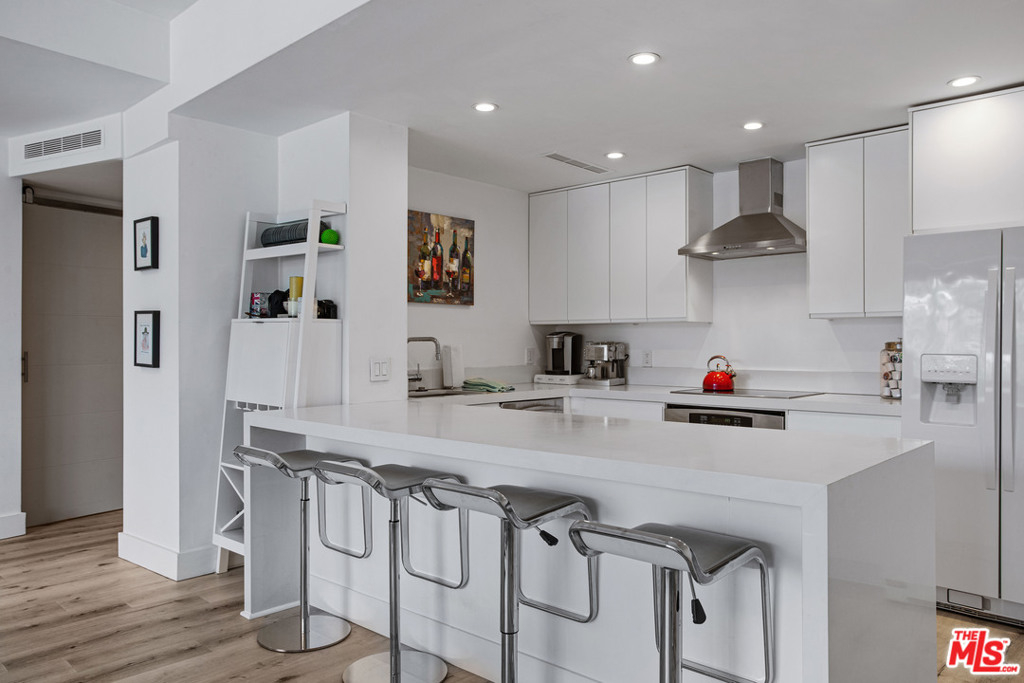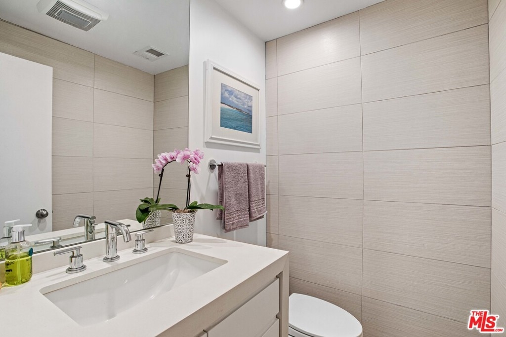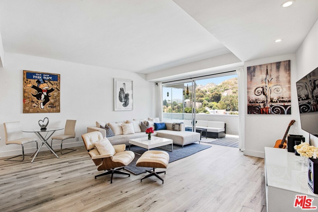 Elevated living creates commanding views of the Hollywood Hills in this spacious, sought after floor plan featuring seamless transitions, crisp lines, modern updates & standout sunsets. Ideal for entertaining, floor to ceiling glass sliders, large balcony, all day consistent northern light. High ceilings, recessed lights, hard surface flooring brings forward modern updates, waterfall kitchen island, bar seating, ample finger rail cabinetry storage, stainless steel range hood, oven & DW. Guest bathroom, custom sink vanity, tile surround, hallway in-unit Bosch stackable laundry.Oversized master suite, loft-like exposed closets, add'l living/office/flex space, en-suite bathroom, custom double vanity, enclosed glass rain shower w/ hand wand.Full service amenities: 2 car tandem parking spaces, XL storage, refined lobby, updated hallways, valet guest parking, security, concierge, pool/spa, clubhouse, rooftop sundeck, yoga room & gym all w/ comparatively low HOA dues.