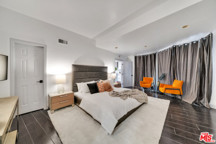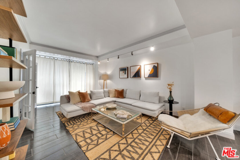 Designer unit, Beautifully remodeled 2-bed, 1.5-bath, corner residence with a private patio in the premier full-service high-rise, Franklin Towers. With over 1,360 SF of living space, front covered balcony, and a fenced-in green yard. Spacious floor plan with formal entry, porcelain tile hardwood floors throughout, and the brand new sizable kitchen is perfect for entertaining and offers expensive finishes throwout. The dramatic primary suite features a private bathroom with dual sinks and a large shower. The second bedroom-office gives comfort and ease. This is one of the only residences with an approximately 1,000-SF private backyard and an in-unit stackable washer-dryer for added convenience. Franklin Towers provides a lifestyle that combines a sophisticated lobby, valet guest parking, security, resort size pool-spa, updated clubhouse with steam rooms, dry saunas, a yoga room, and a full kitchen along with a rooftop sun deck and gym. Area attractions include Runyon Canyon trails. A must-see.