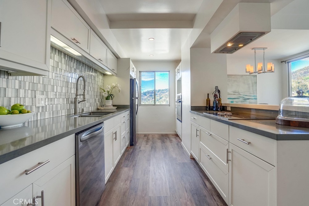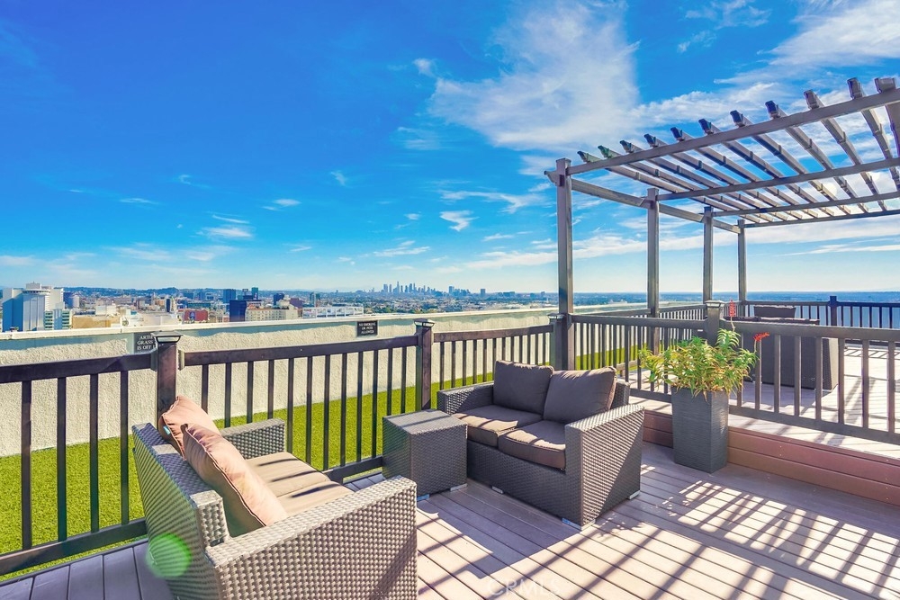 SPECTACULAR PANORAMIC VIEWS OF CENTURY CITY, WESTWOOD AND THE PACIFIC OCEAN ON A CLEAR DAY!!! Perched high above Los Angeles, this west-facing 11th floor corner unit provides incredible panoramic daytime and sunset views. Fully remodeled, 2 bedroom 2 bathroom unit is 1248 square feet with extra large wraparound balcony. In-unit laundry and 2 parking spaces included. Primary suite has 3 double closets. Contemporary finishes include quartz countertops throughout, sleek chrome fixtures and plank flooring. Black stainless steel appliances and smooth black glass cooktop. Famous Franklin Towers is THE place to live and play. Valet parking for guests and a huge rooftop patio with breathtaking views make entertaining easy. A beautiful clubhouse complete with kitchen, party room, steam room, dry sauna and yoga room is next to the heated pool and spa. Runyon Canyon, Hollywood Blvd. and the Sunset Strip are all nearby. The rooftop gym enclosed in glass will inspire your workouts. 24-hour Concierge accepts your deliveries, greets your guests and provides building security. The ultimate in luxury living.