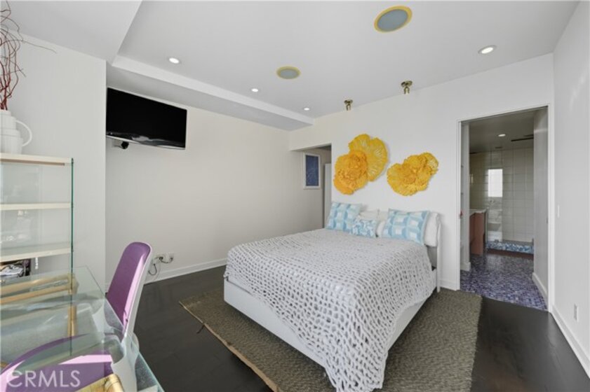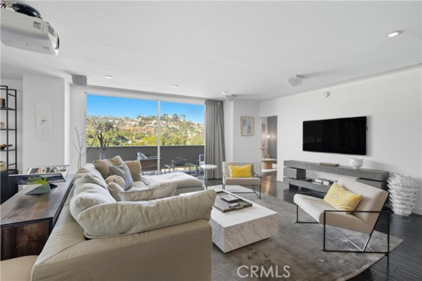 Experience penthouse living at its finest in the prestigious Franklin Towers. This rare offering features sweeping, unobstructed views that span from Century City and the Hollywood Hills to the Pacific Ocean, all framed through two expansive balconies with dramatic floor-to-ceiling glass panels. A double-door formal entry welcomes you into a light-filled open floor plan designed for both grand entertaining and everyday elegance. The living and dining areas feature integrated surround sound, a ceiling-mounted projector with retractable screen, and seamless indoor-outdoor flow; perfect for hosting in true Hollywood style. Featured in HBO’s Entourage, this residence embodies cinematic glamour. The chef’s kitchen is a statement in modern design, outfitted with sleek custom cabinetry and premium built-in appliances. Two luxurious ensuite bedrooms, each with private balcony access and panoramic views, and spa-inspired bathrooms and generous size walk-in closets. Additional highlights include a powder room, in-unit laundry, hardwood flooring throughout, and 3 assigned parking spaces. Franklin Towers is a Hollywood landmark, offers white-glove amenities including 24/7 concierge and onsite valet service, heated lap pool and spa, steam room, sauna, rooftop fitness center, clubhouse, dog run, and an expansive rooftop deck showcasing 360-degree views from cityscape to ocean. Perfectly positioned near the iconic Sunset Strip, Hollywood Bowl, Walk of Fame, and Runyon Canyon trails, this penthouse embodies the ultimate blend of luxury, lifestyle, and location.