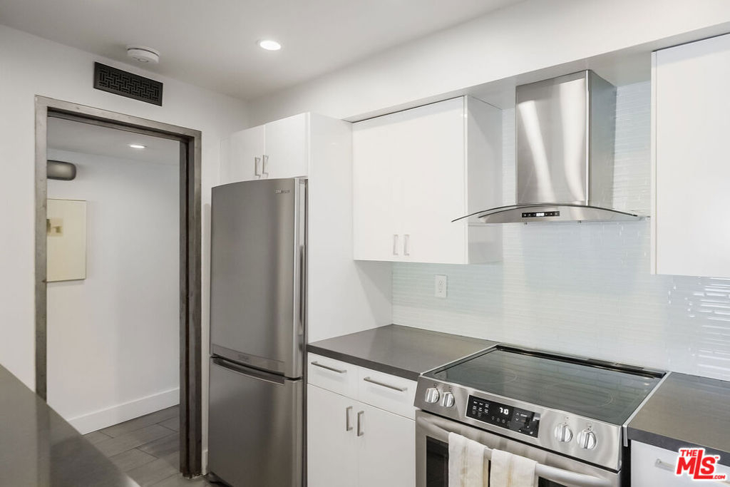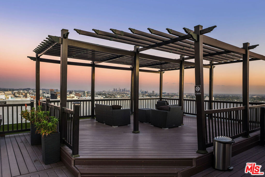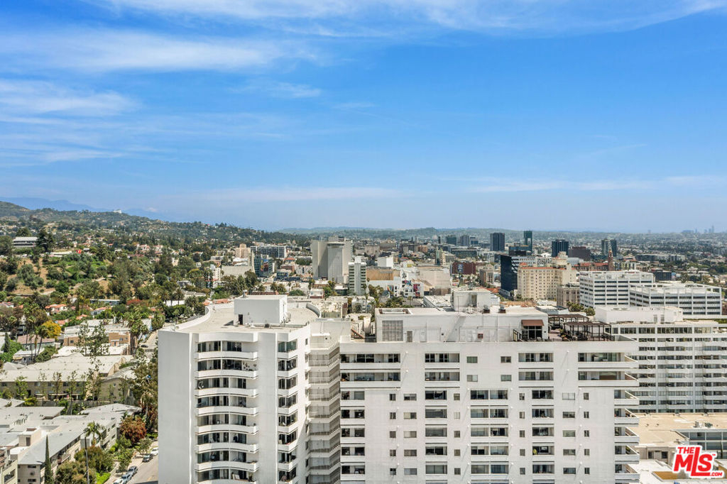 Step into this breathtaking 1-bed, 2-bath condo nestled just south of Runyon Canyon in the full-service Franklin Towers. Spanning a spacious 1,090 square feet and featuring an incredible open floor plan, this residence effortlessly blends contemporary comfort with urban convenience. Perched on the 5th floor, this unit offers stunning views of the canyons and hills that surround the complex. The living room becomes a focal point with its high ceilings and custom built-in shelving, seamlessly connecting the living, dining, and kitchen areas creating an ideal setting for entertainment and relaxation. The sleek kitchen boasts wood cabinetry, quartz countertops, and stainless steel appliances, catering to both style and functionality. Step outside to your private balcony, a perfect extension of your living room, offering views of the Hollywood Hills and the city below. The luxurious primary suite at the end of the hallway is well-proportioned with ample closet space and a bonus nook perfect for a desk or lounge area. The primary en-suite has been fully remodeled with impeccable design and a double vanity. Additionally, the conveniently located powder room has been recently remodeled for your guests. Recent updates include a new HVAC with Nest Thermostat, LED lights, new range/hood and fresh paint. Elevating your living experience, Franklin Towers offers a comprehensive suite of amenities, including 24/7 security and concierge, a heated pool/spa, steam room, sauna, yoga room, dog run, clubhouse/rec room, gated parking, valet guest parking, as well as a rooftop gym and deck with 360-degree views that include the ocean, Downtown LA, the Hollywood Sign and Griffith Observatory! Situated in a highly walkable neighborhood, explore the vibrant surroundings with ease, from renowned dining and shopping destinations. For those seeking the quintessential Hollywood lifestyle, this condo offers resort-like living at an incredible price.