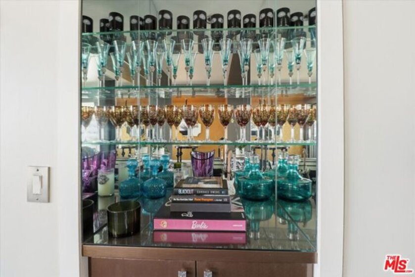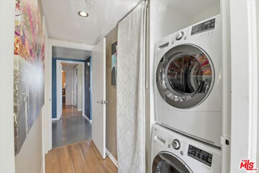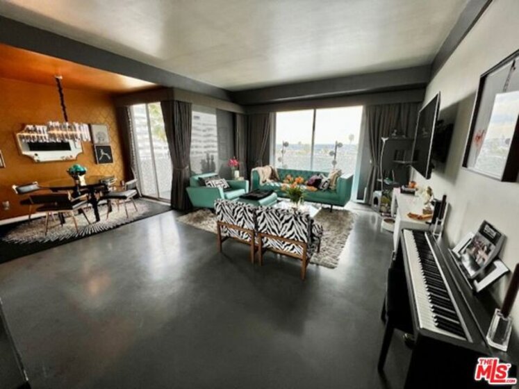 Perched on the fifth floor of the sought-after Franklin Towers at 7250 Franklin Ave #517, this renovated corner residence offers 2 bedrooms and 2 bathrooms with sweeping views of the Los Angeles skyline. The generous wraparound terrace showcases dramatic city vistas and spectacular sunset displays. Meticulously upgraded throughout, this contemporary home features concrete and hardwood floors, designer wallpaper accents, and a custom mirrored wall that enhances the sophisticated aesthetic. The designer kitchen is outfitted with stainless steel appliances, contemporary cabinets, and black granite countertops that blend sophistication with practicality. A newly updated air-conditioning system ensures year-round comfort, while the luxurious cedar-lined walk-in closet and custom built-in closets provide abundant storage solutions. Convenience is enhanced with in-unit laundry hookups and two designated parking spots plus additional storage space. Franklin Towers delivers exceptional full-service amenities including round-the-clock concierge and security services, valet parking, a temperature-controlled pool, spa facilities, steam room, dry sauna, dedicated yoga studio, and a glass-walled rooftop fitness center offering magnificent city scape panoramas. The rooftop entertaining space and clubhouse featuring a full kitchen and comfortable lounge area create the perfect setting for gatherings. Perfectly positioned near Runyon Canyon, Hollywood Boulevard, and the Sunset Strip, this outstanding residence provides unparalleled urban luxury living.