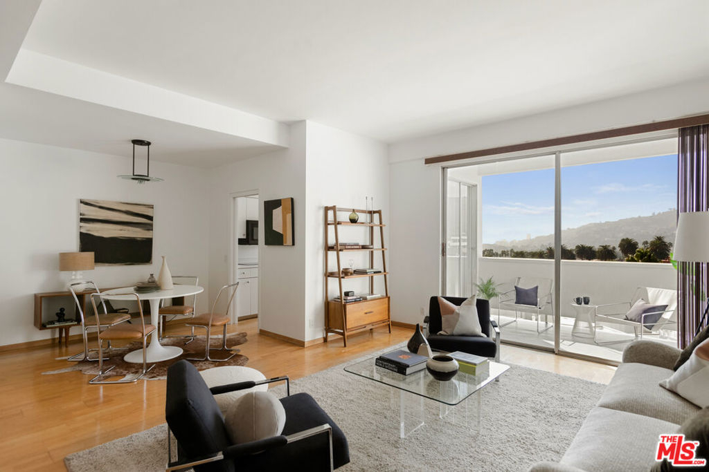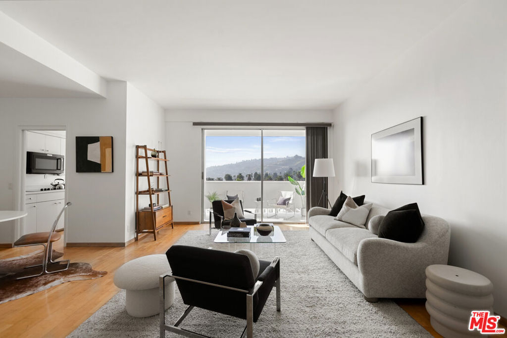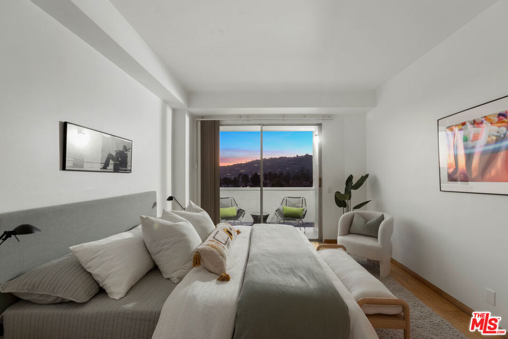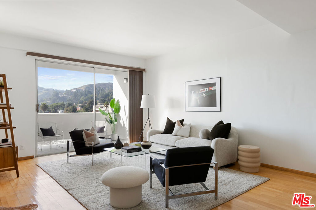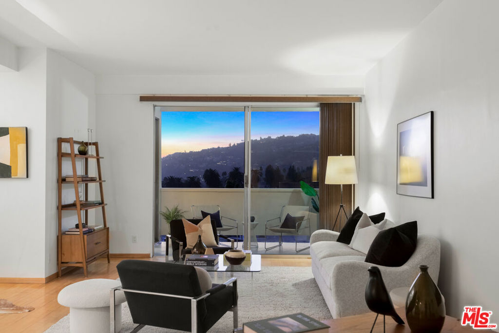 Discover the rare opportunity to bring your vision to life as you see fit with views from this high-rise condo being the undeniable heart of the experience. Panoramic vistas of the Hollywood Hills to Century City from every room capture your attention like living works of art, with changing colors and moods throughout the day and evening. The spacious floor plan with high ceilings, large balcony connecting living room and kitchen, and existing seamless transitions can be creatively designed into 2 bedrooms/flex space while adding a possible three-quarter bathroom further elevating the offering and value. The primary suite with its own private balcony extends your personal sanctuary with the world outside as you desire. In unit laundry hookups can be installed. Newer HVAC and nest thermostat for added modern convenience. Franklin Towers provides a lifestyle that combines a refined lobby with door person, valet guest parking, electric car charging stations, security, resort size pool/spa, club house with steam rooms, dry saunas, yoga room and full kitchen along w/ dog run, rooftop sundeck and gym. Area attractions including Runyon Canyon hiking trails, Hollywood Walk of Fame & Sunset Strip.