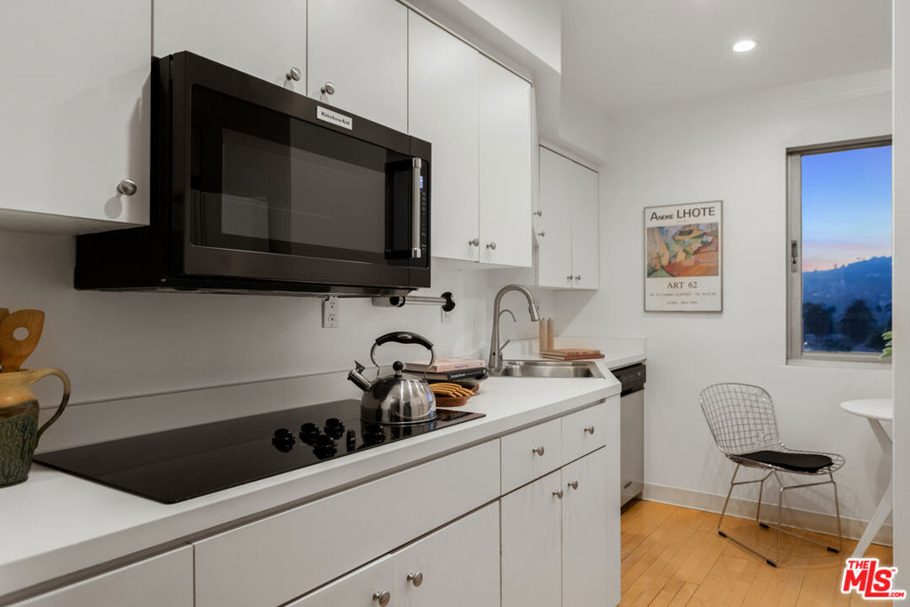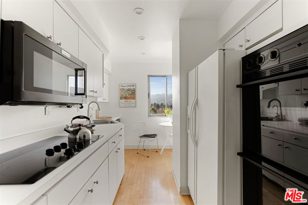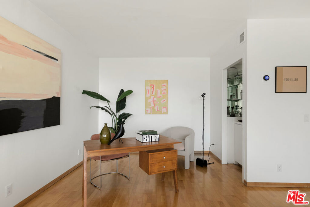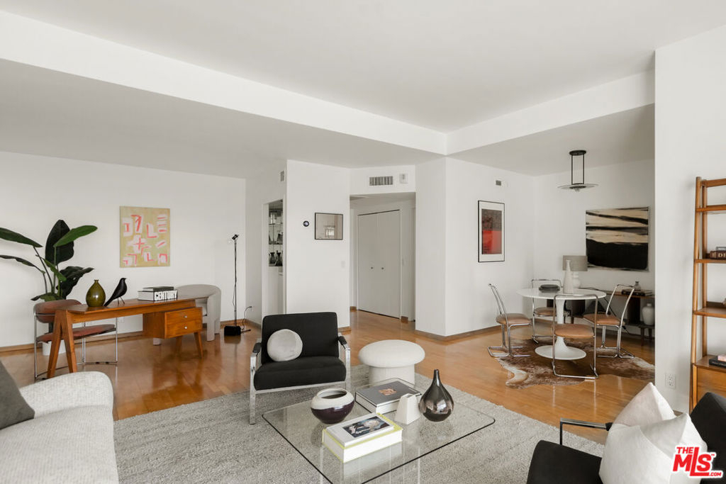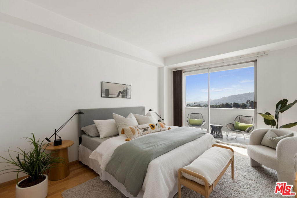 Discover the rare opportunity to bring your vision to life as you see fit with views from this high-rise condo being the undeniable heart of the experience. Panoramic vistas of the Hollywood Hills to Century City from every room capture your attention like living works of art, with changing colors and moods throughout the day and evening. The spacious floor plan with high ceilings, large balcony connecting living room and kitchen, and existing seamless transitions can be creatively designed into 2 bedrooms/flex space while adding a possible three-quarter bathroom further elevating the offering and value. The primary suite with its own private balcony extends your personal sanctuary with the world outside as you desire. In unit laundry hookups can be installed. Newer HVAC and nest thermostat for added modern convenience. Franklin Towers provides a lifestyle that combines a refined lobby with door person, valet guest parking, electric car charging stations, security, resort size pool/spa, club house with steam rooms, dry saunas, yoga room and full kitchen along w/ dog run, rooftop sundeck and gym. Area attractions including Runyon Canyon hiking trails, Hollywood Walk of Fame & Sunset Strip.