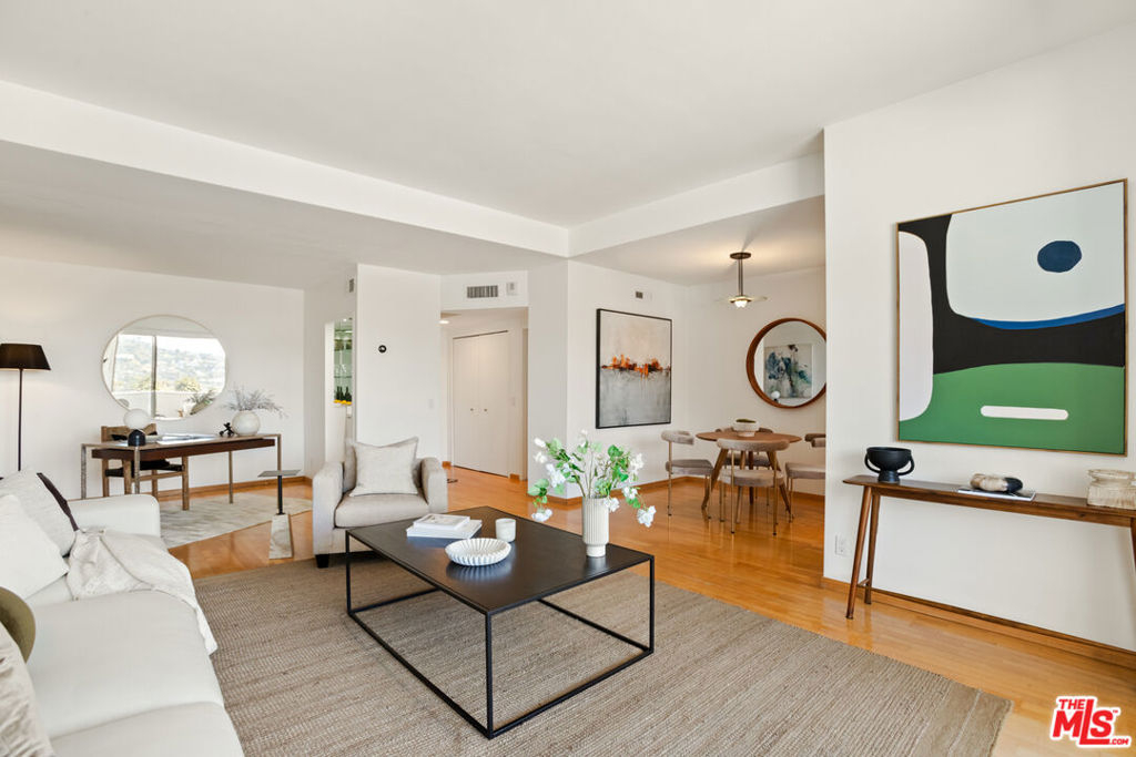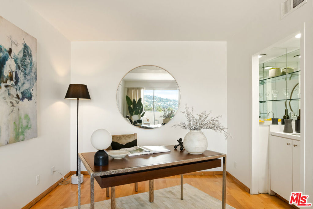 Discover the rare opportunity to bring your vision to life as you see fit with views from this high-rise condo being the undeniable heart of the experience. Panoramic vistas of the Hollywood Hills to Century City from every room capture your attention like living works of art, with changing colors and moods throughout the day and evening. The spacious floor plan with high ceilings, large balcony connecting living room and kitchen, and existing seamless transitions can be creatively designed into 2 bedrooms/flex space while adding a possible three-quarter bathroom further elevating the offering and value. The primary suite with its own private balcony extends your personal sanctuary with the world outside as you desire. In unit laundry hookups can be installed. Newer HVAC and nest thermostat for added modern convenience. Franklin Towers provides a lifestyle that combines a refined lobby with door person, valet guest parking, electric car charging stations, security, resort size pool/spa, club house with steam rooms, dry saunas, yoga room and full kitchen along w/ dog run, rooftop sundeck and gym. Area attractions including Runyon Canyon hiking trails, Hollywood Walk of Fame & Sunset Strip.