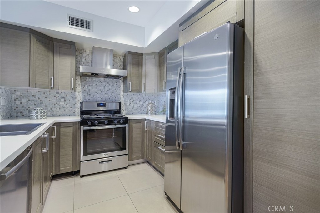 Stunning newer contemporary condo in the heart of Hollywood. Close to restaurants, Runyon Canyon, social hotspots, Hollywood bowl, Sunset strip, Hollywood Blvd, and freeways. 3 bedroom, 3 full bathrooms in a quiet building on a beautiful tree lined streets. Very bright front facing corner unit with open floor plan all on a single level. Contemporary open gourmet kitchen with pure white quartz counters, elegant tiled backsplash, custom cabinets and stainless steel appliances. Brand new Stainless Range and Refrigerator less than 6 months old.  Spacious living area with high ceilings, fireplace, wide plank Oak wood floors and large sunny south facing balcony. Dual Master Suites. Large Master suite with lots of windows and custom walk-in closets. Luxurious bathroom with quartz counters with dual sinks, separate tub and shower and exquisite Grohe fixtures. Second suite with en-suite bathroom and tub. Inside laundry. Pre-wired alarm system. Roof top terrace. 2 assigned parking spaces and 8 guest spaces. Mobile device controlled video intercom system and all owners have access to closed circuit video cameras through a mobile app. Owner is allowed to install EV charging station in their own parking spot.
