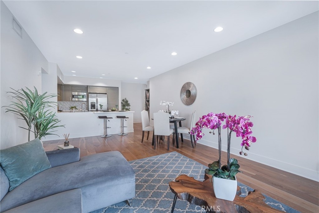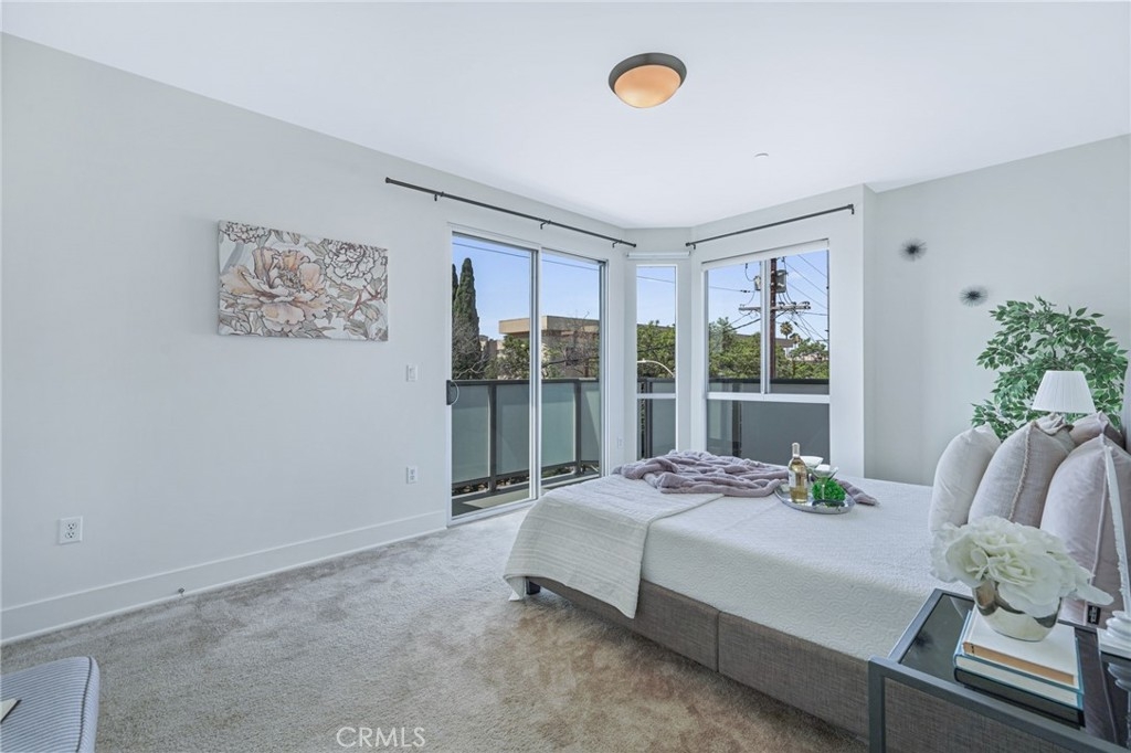 Stunning newer contemporary condo in the heart of Hollywood. Close to restaurants, Runyon Canyon, social hotspots, Hollywood bowl, Sunset strip, Hollywood Blvd, and freeways. 3 bedroom, 3 full bathrooms in a quiet building on a beautiful tree lined streets. Very bright front facing corner unit with open floor plan all on a single level. Contemporary open gourmet kitchen with pure white quartz counters, elegant tiled backsplash, custom cabinets and stainless steel appliances. Brand new Stainless Range and Refrigerator less than 6 months old. Spacious living area with high ceilings, fireplace, wide plank Oak wood floors and large sunny south facing balcony. Dual Master Suites. Large Master suite with lots of windows and custom walk-in closets. Luxurious bathroom with quartz counters with dual sinks, separate tub and shower and exquisite Grohe fixtures. Second suite with en-suite bathroom and tub. Inside laundry. Pre-wired alarm system. Roof top terrace. 2 assigned parking spaces and 8 guest spaces. Mobile device controlled video intercom system and all owners have access to closed circuit video cameras through a mobile app. Owner is allowed to install EV charging station in their own parking spot.