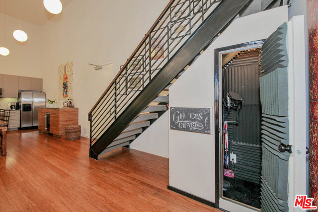 Striking Two Story Architectural Loft With 18' Ceilings In The Heart of Hollywood. This Unit Comes With A Fantastic Open Floor Plan Which Includes A Custom Sound Booth For Music Or Voiceover Recordings, Hardwood Floors Downstairs & In The Loft Master Bedroom, Ceaserstone Counter Tops, Stainless Steel Appliances, Brand New Full Size LG W/D, Central Heat & Air, New Reverse Osmosis Water Filter, New Nest Thermostat, Custom Kitchen Island and Bar with Wine Fridge, Whisper Quiet Fans In Both Bathrooms, Brand New Pump for Water Heater, Lovely Paneled Divider That Separates Your Living Room From The 2nd Bedroom/Office/Den, Low HOA's & 7 Guest Parking Spots. Walking Distance to The Metro Red Line, Hollywood & Highland, Roosevelt Hotel, Dolby Theatre, LA Fitness & Runyon Canyon.