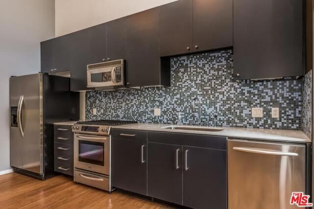 Ultra-modern and chic two story loft in a premier Hollywood location. Unit features an open versatile floor plan with soaring 18ft ceilings, bamboo floors, large windows, balcony, fireplace and stainless appliances. Contemporary kitchen and baths have beautiful quartz countertops and mosaic tile work. 2 parking spaces with 9 guest spaces. Stunning 18-unit architectural building with rooftop deck perfect for entertaining.