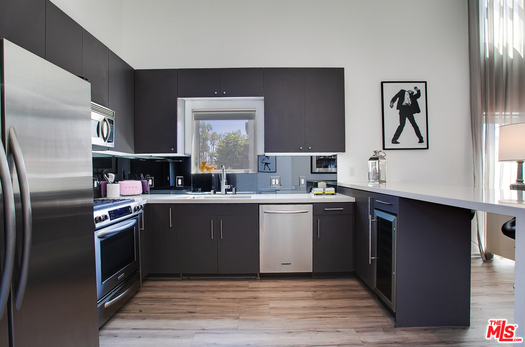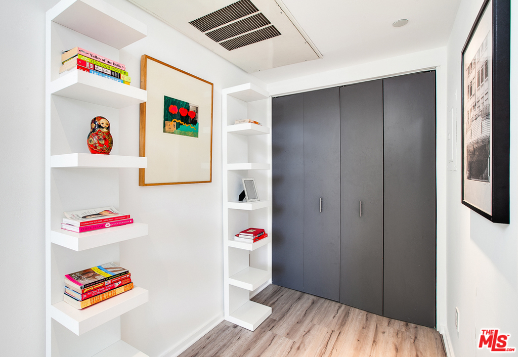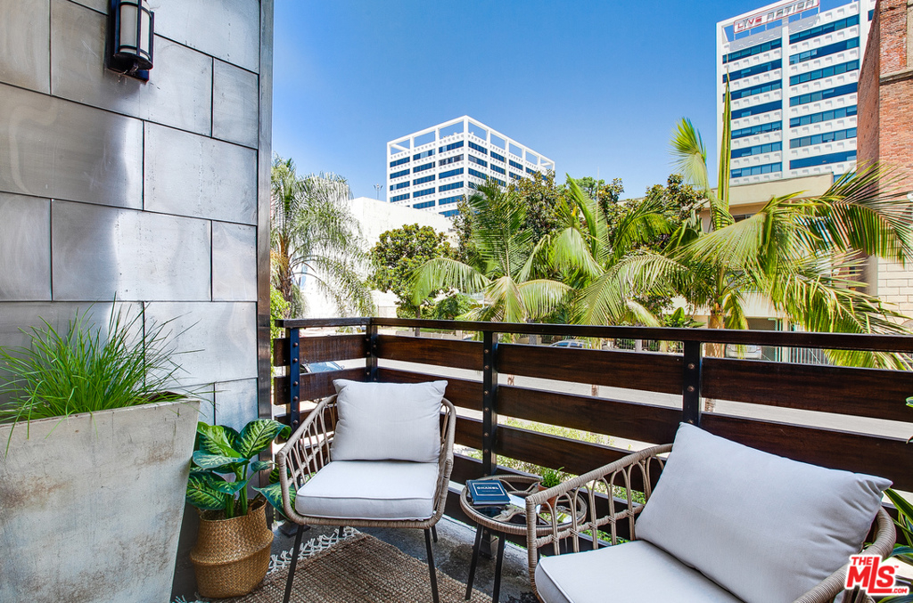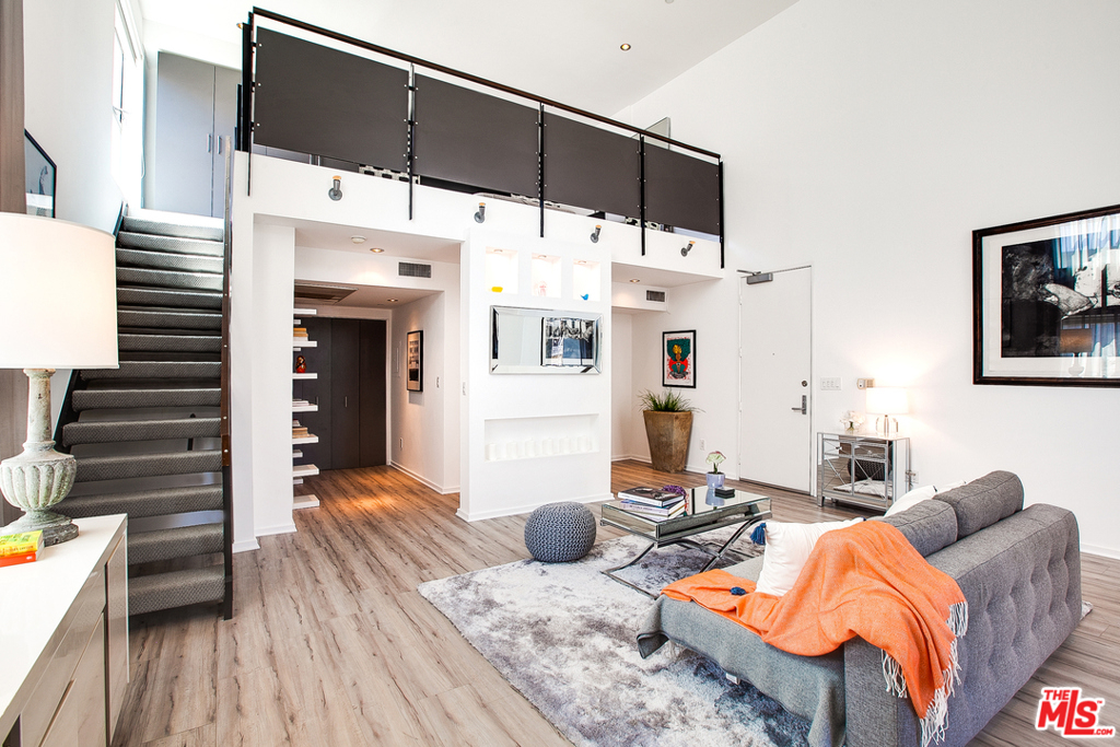 This impressive loft-like home features dramatic 18' ceilings, a spacious two-level floor plan and a private balcony which allows for an abundance of natural light. This front-facing, newly renovated unit includes wood flooring, oversized windows, wine fridge, stainless steel appliances, marble countertops, updated bath and modern fixtures throughout. Amenities include central AC and heat, in-unit washer & dryer, two gated and secure parking spots, ample guest parking, a low HOA and a community rooftop deck with panoramic views of the city. Located around the corner from the iconic Roosevelt Hotel, you'll enjoy the easy convenience of restaurants, shops, theaters, nightlife, parks and so much more!