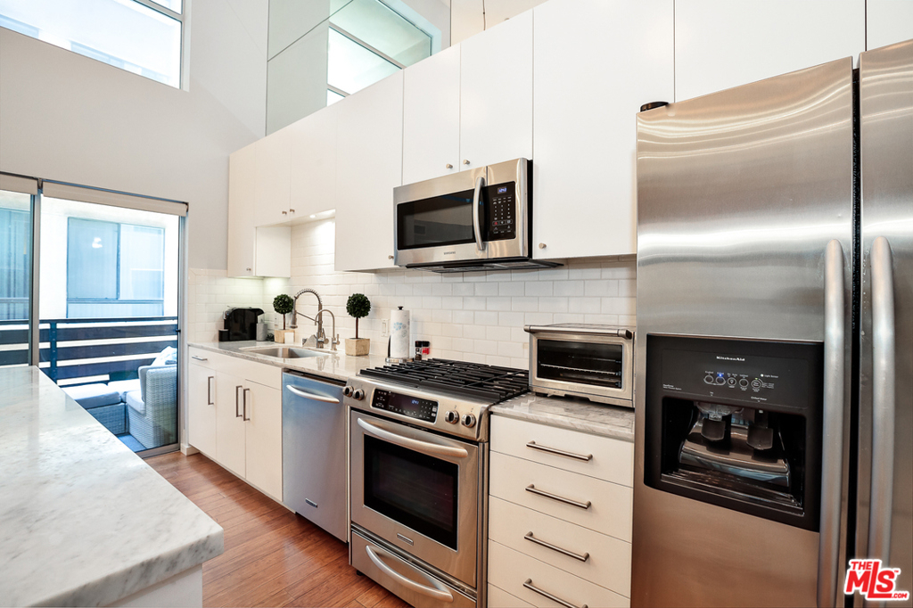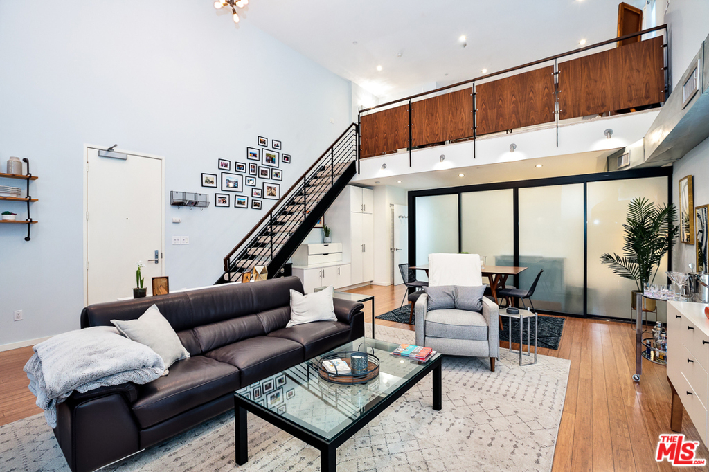 Stylish and unique 2-story loft in the heart of Hollywood (with low HOA dues!) is just a short distance from Runyon Canyon, Walk of Fame, The Roosevelt, Dream Hotel, Set and Flow Yoga, and all the exciting attractions this area has to offer. This newer building (completed in 2006) includes a common rooftop deck with panoramic views of Los Angeles, 2 parking spots, extra storage and secured entry. The unit features dramatic 18' ceilings in the main living area, IN-UNIT LAUNDRY, upper loft with master suite, wood flooring, balcony, and new HVAC system. Other upgrades include: custom sliding dividers for guest bedroom, new shades (upper is electric), updated lighting in living room and kitchen, updated fixtures in guest bathroom. Kitchen was recently refreshed with painted cabinets, back splash, and new faucet. This is a ultra-cool space and a great value! Easy to show.