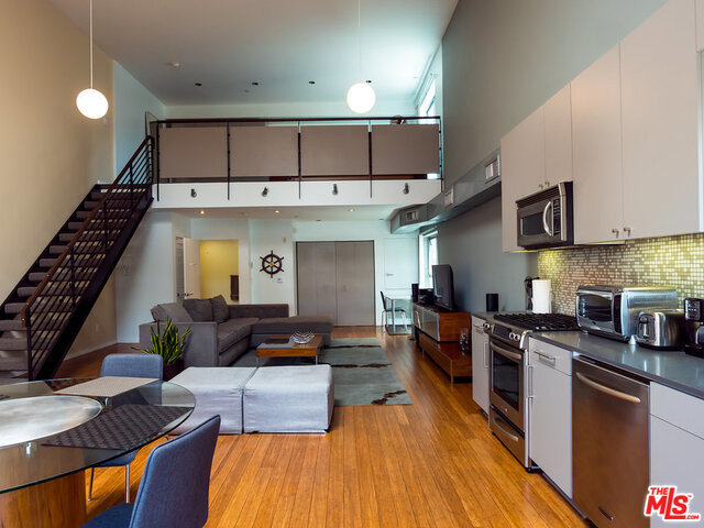 Dramatic NY Style PH Loft in the Heart of Hollywood with 18ft ceilings and great natural light! Corner unit, only 1 shared wall, top floor, no one above you! Beautiful Caesar Stone Kitchen with Stainless Steel appliances. Gorgeous Mosaic Tile Bath, H/W floors, Large Windows, Fireplace, in-unit Laundry & Large Private Terrace with views. Bedroom is the loft overlooking living room. 2 Parking Spaces(not tandem) + 9 guest pkng spaces for the bldg and a community rooftop deck! There is an additional space, open to the living room, that can be used as an office/den. High Walk Score! Just steps to Roosevelt Hotel, HH Center and More. If you like open layouts you will love this! PLEASE SEE PRIVATE REMARKS. Furniture included in the sale of property.
