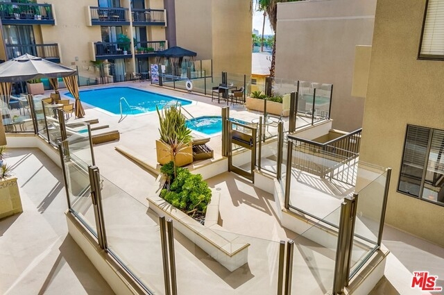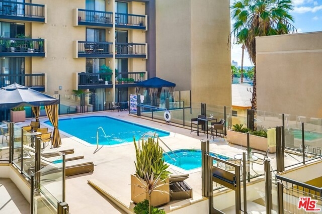 This Fabulous luxurious condo in the heart of Hollywood would suit the pickiest of buyers. Upgraded throughout. Private large balcony to enjoy your breakfast in the morning sun or sip a cocktail overlooking the sparkling pool. Large windows with lots of natural light, this is the largest footprint in the well-maintained building. Two Master suites each with own en suite bathroom, separated by a Large living area, separate kitchen, fully equipped with modern appliances. Gas hotplates. Dining area. Immaculately kept. Close to the famous Runyon Canyon hiking trails and much of the Hollywood night-life. Stroll to cosy restaurants both inexpensive and high-end. The condo is as new, a perfect design for sharing also. Clean, modern amenities, new fabulous pool, cabana area, hot tub, small well-equipped gym. Peekaboo view. Separate Washer & Dryer in unit. Tiled floors throughout. Guest parking. Guard duty at night. Come see for yourself! Move in and enjoy this easy living lifestyle.