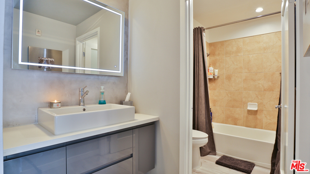 This Fabulous luxurious condo in the heart of Hollywood would suit the pickiest of buyers. Upgraded throughout. Private large balcony/patio to enjoy your breakfast in the morning sun and sip a cocktail overlooking the sparkling pool. New double pane windows, sliding doors, the largest jewel in this well-maintained building. Two Master suites each with own designer upgrade en suite bathrooms and 2 Walk in closets. Bedrooms separated by a spacious living area, gas fireplace, fully equipped kitchen, modern appliances. Gas hotplates. Dining area. Immaculately kept. Close to famous Runyon Canyon hiking trails & much of the Hollywood night-life. Stroll to cozy restaurants inexpensive & high-end. This condo is as new, perfect design for sharing also. Clean, modern amenities, fabulous pool, cabana area, hot tub, small well-equipped gym. Engineered wood floors, Separate Washer & Dryer in unit. Central air. 2 Car & Guest parking. Guard duty at night. Move in & enjoy this easy living!