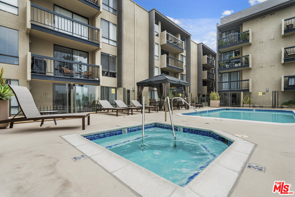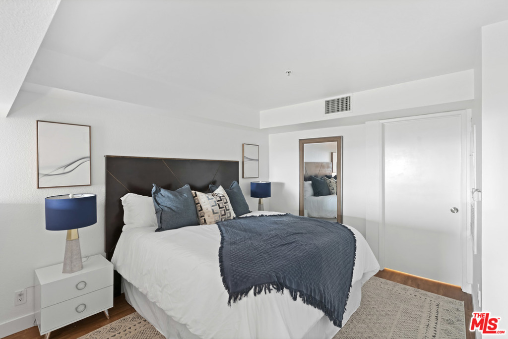 Trendy and Inspiring Condo in Hollywood! Perfectly located in the heart of Hollywood/Sunset Strip at the Hollywood Regis building, this FULLY RENOVATED 0BR/1BA home is fully equipped for easy and comfortable living. Step inside to find an open floorplan with premium finishes, a flood of scintillating natural light, stunning hardwood floors, a designer color scheme, and a spacious living room. Entertain guests and mix drinks in the open concept kitchen featuring quartz countertops, stainless-steel appliances, dishwasher, sleek ample white cabinetry, gas cook-top, built-in microwave, track lighting, and an adjacent dining room with authorized double glass soundproof sliding glass doors to the spacious balcony. Sit on the balcony and sip cocktails with friends while admiring the intoxicating views of downtown Los Angeles. Discover relaxing evenings in the NYC loft style bedroom, which has a walk-in closet with a washer and an attached full bathroom w/storage vanity and a shower/tub combo. For a healthful lifestyle, enjoy the community amenities of a swimming pool, hot tub, sun deck w/cabanas, and a fitness studio! Other features: 1-covered and secured parking space, onsite management, security fob on all entries, close to Runyon Canyon, shopping, chic restaurants, the Hollywood Bowl and more!