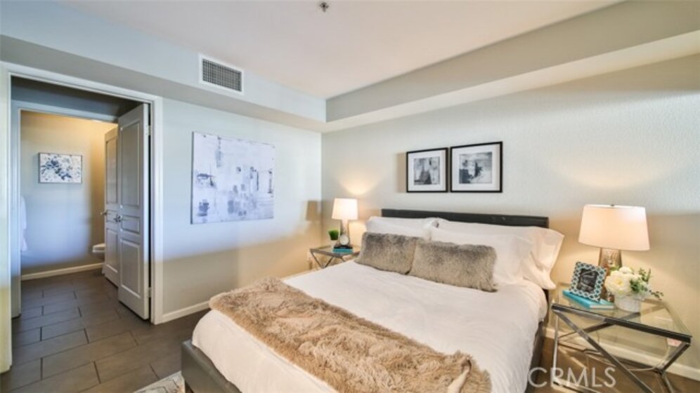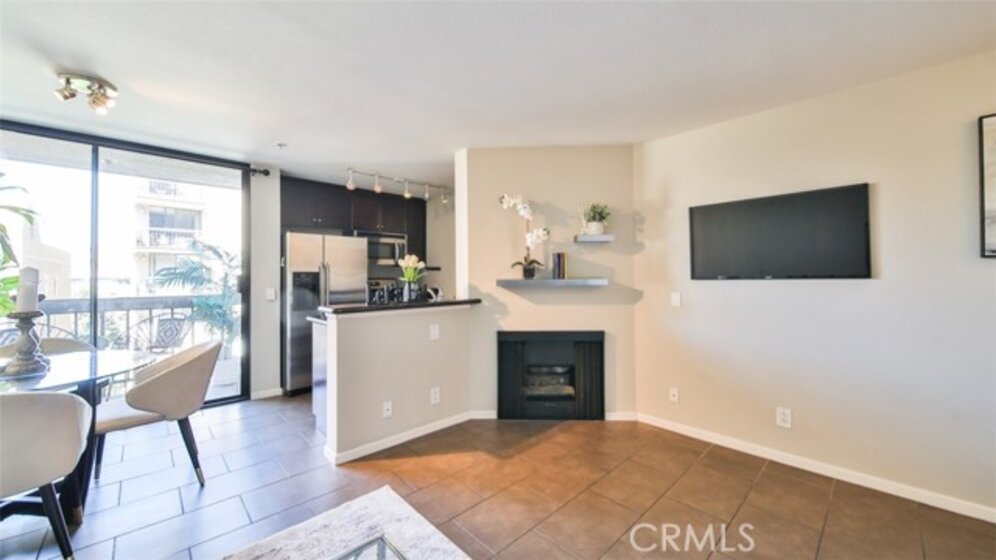 This Junior One Bedroom is perfect as your new home or Pied-a-Terre. Enjoy the afternoon sunshine, and escape the sound of the City with this interior unit that overlooks the pool with a peek-a-boo view of the Hollywood Hills. This Open Concept, bi-level unit is perfect for entertaining with Stainless Steel appliances, balcony and a Gas Fireplace. The step up bedroom has a nice size bathroom, with separate vanity area and a huge walk in closet. The buildings amenities include a fitness center, pool, spa, car chargers and gated access.