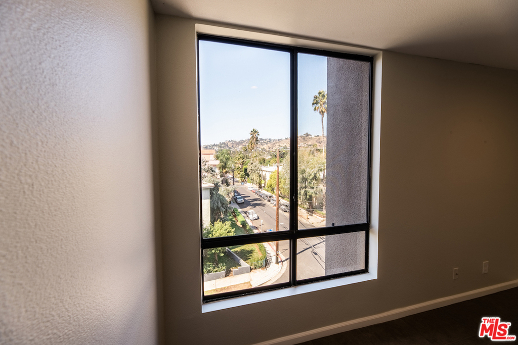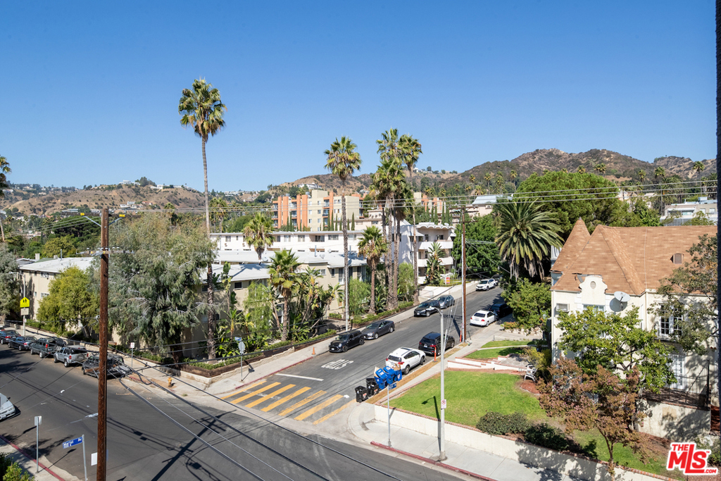 Resort-style living at the foot of the Hollywood Hills, just steps from Runyon Canyon! This third floor corner unit, with 2 large bedrooms and 2 en-suite bathrooms and walk-in closets, is among the largest and best positioned units at the Hollywood Regis. Take in incredible views of the Hollywood Hills, the Century City skyline, and Mid-City from your large balcony or from the open and spacious floor plan within. Great natural light, crown moldings, central HVAC, in-unit laundry and gas fireplace. The building's numerous amenities include a stylish newly renovated pool and spa, elegant cabanas and lounge chairs, and a fitness center. Gated access with on-site guard from 10PM - 6AM and on-site day manager. The unit has two deed tandem parking spaces in an underground garage. Short walk to some of the best restaurants and nightlife on Sunset, La Brea and Hollywood Blvd.