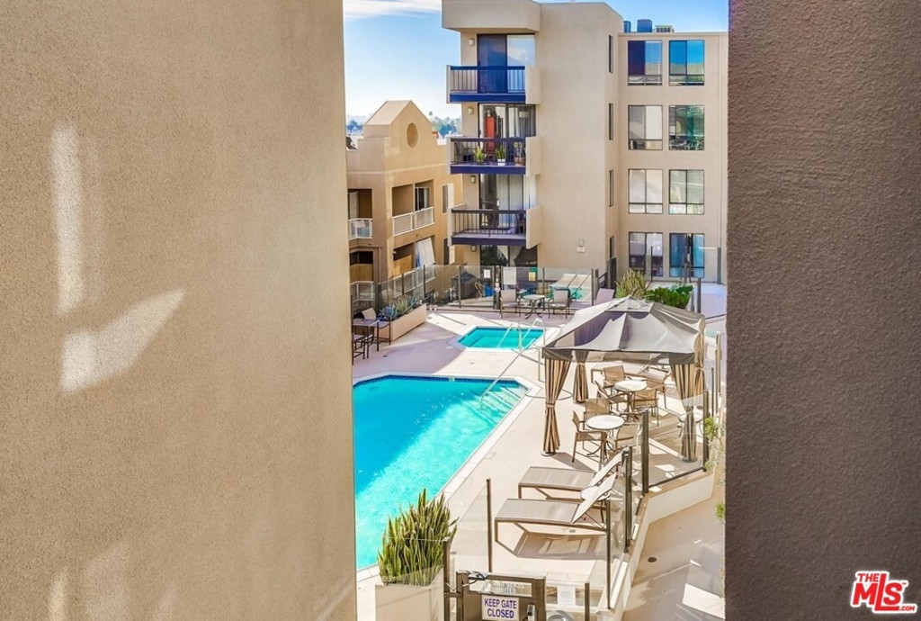 Summer is coming, take advantage of this well priced contemporary updated condo located in the highly coveted Hollywood Regis at the foot of the Hollywood Hills. Features open floor plan, two primary bedrooms with walk-in closets and private baths. Peak a boo views over the sparkling pool and twinkling lights at night. The two Master Bedrooms are separated by a spacious living room / kitchen area - perfect for roommates or to work from home office. Located in a private corner of this well maintained building, sip a cocktail on your private balcony and look to the sparkling pool. Central air, gas fireplace, fully equipped kitchen, stone tile floors, in unit laundry. Resort style living year round. Two gated parking spaces with E.V. charging station. Put your feet up and take a break by the sparkling pool or relax in the spa. Enjoy your work out in the fitness center or take a short walk to Runyon Canyon, many trendy restaurants, shopping, and nightlife. Easy living Hollywood style. Checks all the boxes. Welcome home. Building is FHA approved