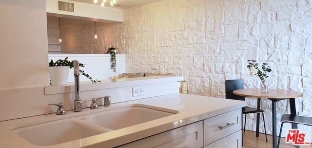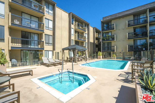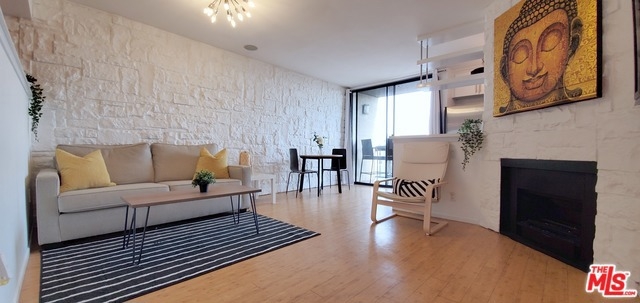 Resort-style living in top floor spacious split level studio/one bedroom at the Hollywood Regis. Live in style, close to everything, open floor plan, large bedroom, walk-in closet, cozy fireplace in living area, private patio with views of DTLA overlooking Hollywood, upgraded countertops, stainless steel appliances, and laundry hook up in unit. Two secured tandem parking spaces included. Onsite night guard, access controlled entrance, heated pool, spa, cabanas, well-equipped fitness room. In the heart of Hollywood, close to Runyon Canyon, shopping, dining, local theaters, TLC and Dolby theaters near Hollywood and Highland.