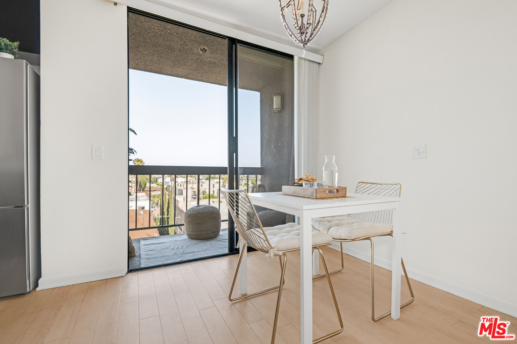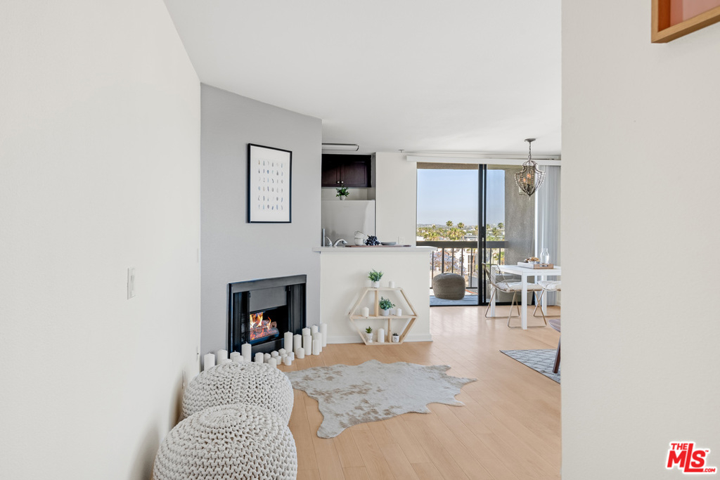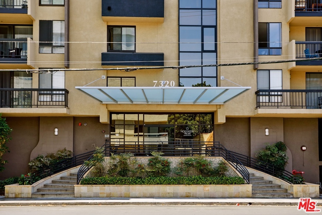 Experience resort-style living in this Hollywood Regis residence. Enter to a living room with fireplace and floor-to-ceiling glass doors that open to a balcony with city views. Features include a spacious bedroom, new kitchen, combined washer and dryer, and two parking spaces. The community includes an onsite night guard, access-controlled entrance, and a well-equipped workout room. In the heart of Hollywood, close to Runyon Canyon, shopping, and dining.