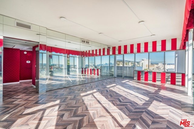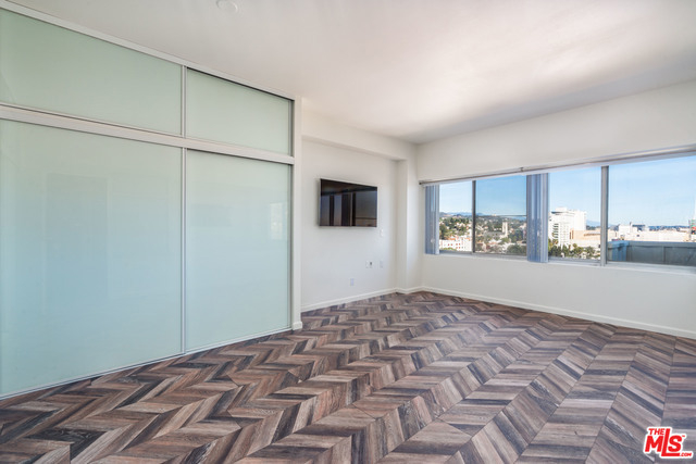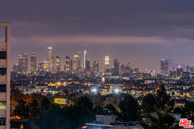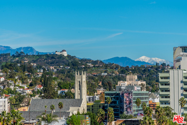 Rare southeast facing corner unit with Downtown, Century City, Hollywood sign and Griffith Observatory views. Newer chevron parquet wood floors throughout and newly remodeled baths with quartz countertops and marble tile. Newer washer and dryer in unit, kitchen appliances and HVAC. Enjoy panoramic views from the east facing balcony and south facing dead on views of Downtown from your living and dining. Full service building with 24 hour valet, doorman, security, pool, rec room, fitness center, and underground parking. Stone's throw from Hollywood's hottest nightlife, restaurants, hotels, theaters, and malls. Pet-friendly HOA with no weight maximum, close to Runyon Canyon, and approved plans to add a dog run along the east side of the building. Seller recently paid special assessment in full in November 2018. Building upgrades to come include hallway renovations including new floors, wall covering and LED lighting. Special assessment to also include dog run and upgraded washer dryers.