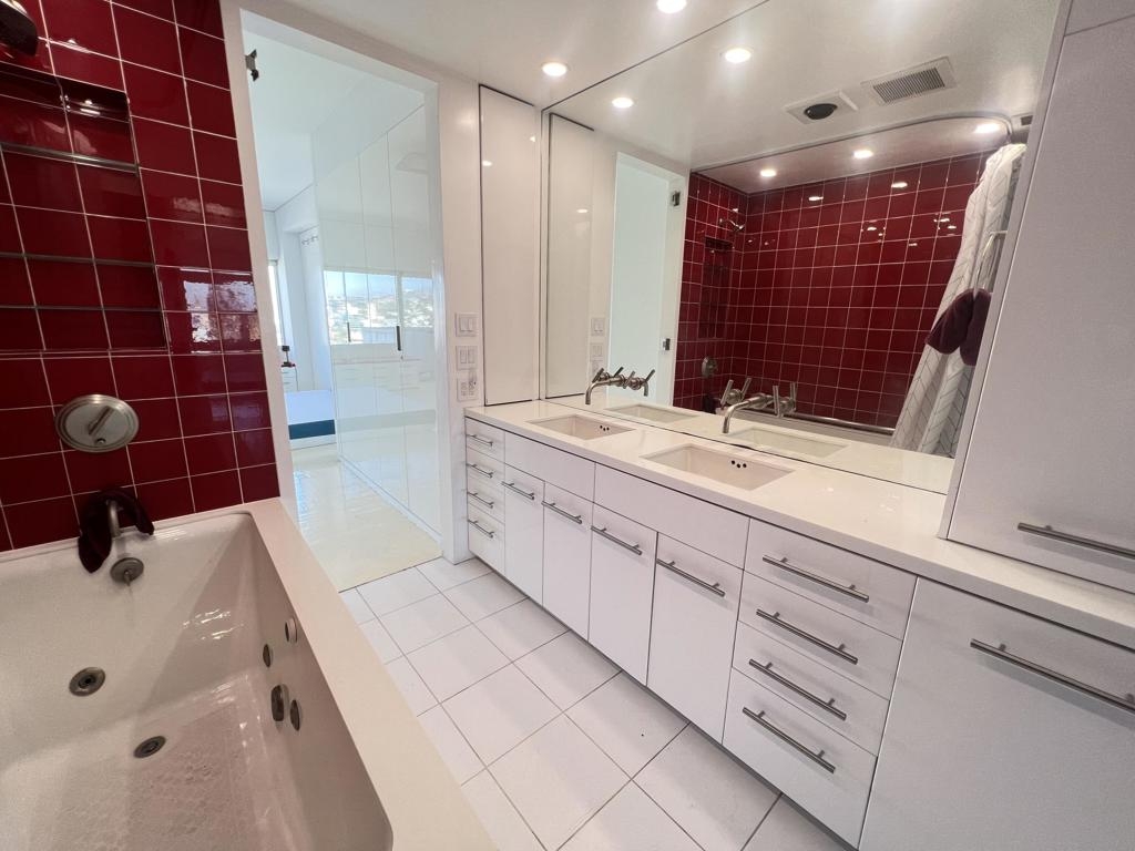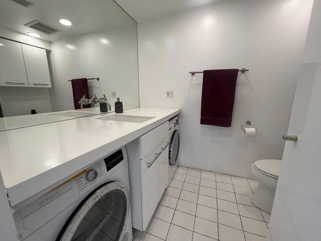 This end unit on the 11th floor of the iconic Versailles Tower of Hollywood is 1,181 sq ft of interior living & features incredible expansive views. See from the Hollywood sign to the Pacific Ocean on a clear day through the walls of glass. This highly desirable condo is on the east side of the building. With an updated kitchen featuring modern white cabinets, quartz counters and wood floors through out, this one bedroom condo features two bathrooms. The bedroom is en suite. Guest bathroom features a full size washer and dryer plus shower. The newly renovated lobby of the building is a great place to relax. Building also features a heated pool area with BBQ, gym and game room with pool table. Additional amenities include a 24 hour valet plus door man. Versailles Tower is a short distance to Runyon Canyon and walking distance to many of Hollywood's great dining and shopping options.