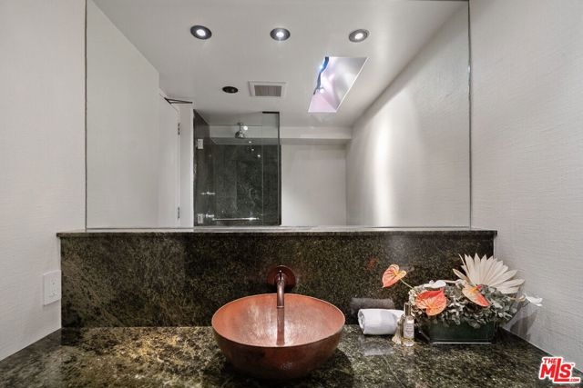 Iconic celebrity owned sensibly designed one-bedroom condominium in amenity rich building with jetliner city views. Indulge in the pinnacle of luxury living with this exceptional residence at the legendary Hollywood Versailles Tower, Hollywood's most exclusive full-service high-rise building. This one of a kind unit was formerly owned and thoughtfully designed by actress Scarlett Johansson. Originally a two-bedroom, the unit has been masterfully reconfigured, creating a truly oversized primary suite complete with walk in closet, vanity and an ensuite bathroom. Step into a light-filled open floor plan where walls of glass showcase breathtaking panoramic views from the Hollywood Hills to Downtown LA and beyond. Rich wood ceilings, a unique stone accent wall, custom built-ins, and a seamless connection to a large private balcony set the stage for refined indoor-outdoor living whether you're enjoying a quiet morning coffee or entertaining against the sparkling city skyline. Enjoy the convenience of full-service amenities, including a 24-hour doorman, valet guest parking, a fully equipped fitness center, heated pool with expansive sun deck, recreation room, community laundry on every floor, newly remodeled lobby, private storage, dog run, car charging stations, and one assigned parking space with the option to rent a second. Located just moments from Runyon Canyon, the Metro, Hollywood Walk of Fame, Pantages Theatre, and the Hollywood Farmers Market, this residence embodies the best of luxury, lifestyle, and location in the heart of Los Angeles.