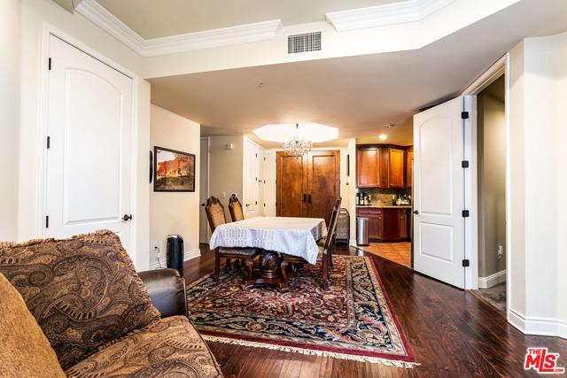 This large & pristine 2BR+2BA corner unit is located in the prime Media District of Hollywood, just minutes away from the coveted Larchmont Village, Archlight Theatre, Movie Studios, Netflix, Griffith Park Observatory, & the most desired restaurants, shops, & hiking trails in the city. Well appointed kitchen w/updated stainless steal appliances & granite counter tops, opening seamlessly to the dining area & living room. Spacious en-suite master bedroom w/ built-in closet & ample storage. Sliding doors open to a tranquil patio. Master bathroom w/ dual sinks & spa-like soaking tub w/shower. Subterranean & gated parking w/ two spaces & guest parking. The grounds are well-maintained w/ a lush courtyard w/ fountain creating a very peaceful living experience. Great buy.