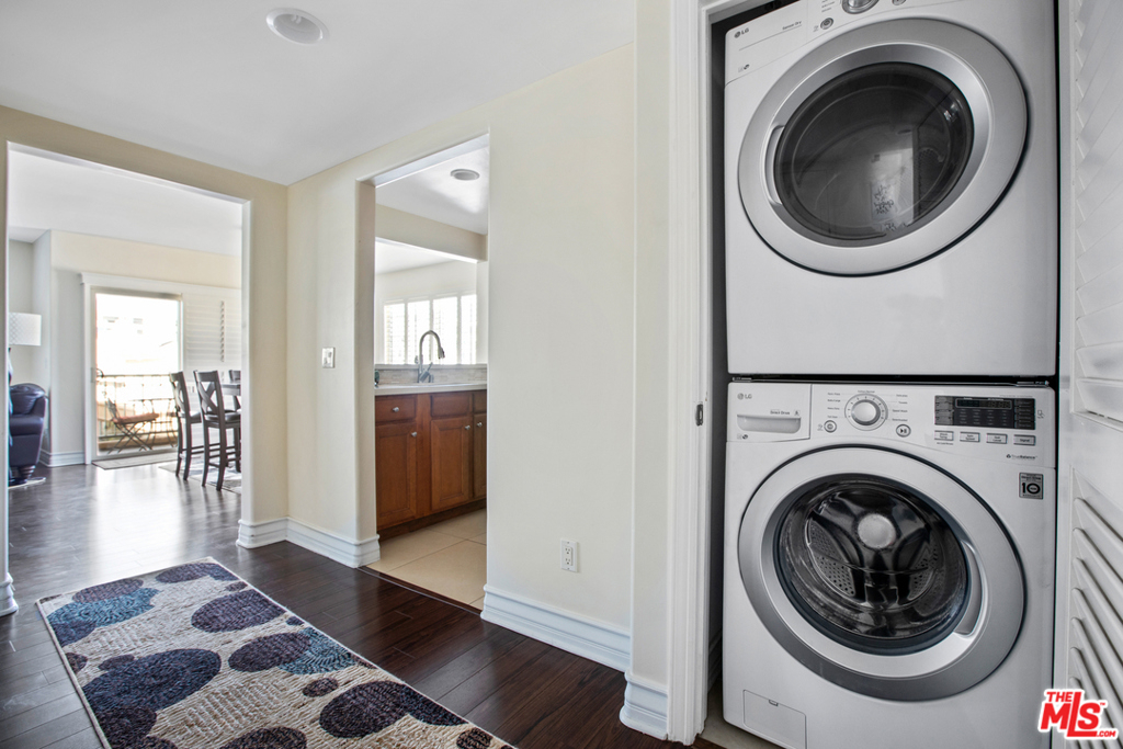 Front facing third floor unit in a small newer building with all windows looking out to city lights, hills and landmark buildings. Nice size balcony with views. Bright and airy with high ceilings. Move in ready with spacious floor plan, wide hallways, master suite with spectacular size walk in closet. Open kitchen with plenty of cabinets. Washer and dryer inside the unit. Feels like a home. Great location for urban living.