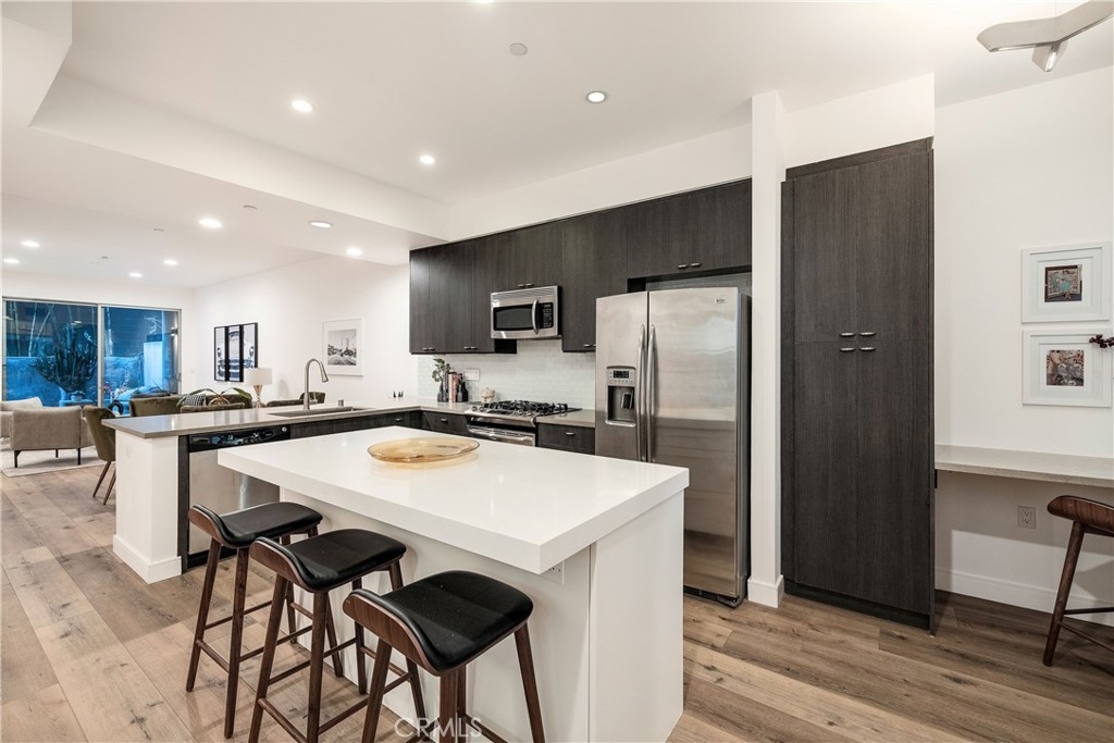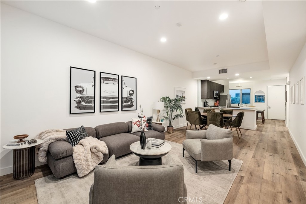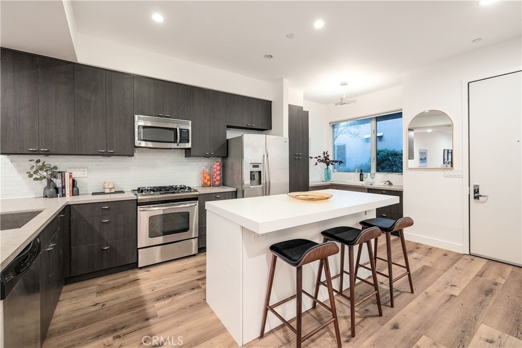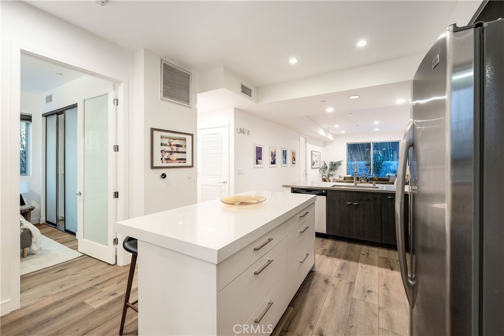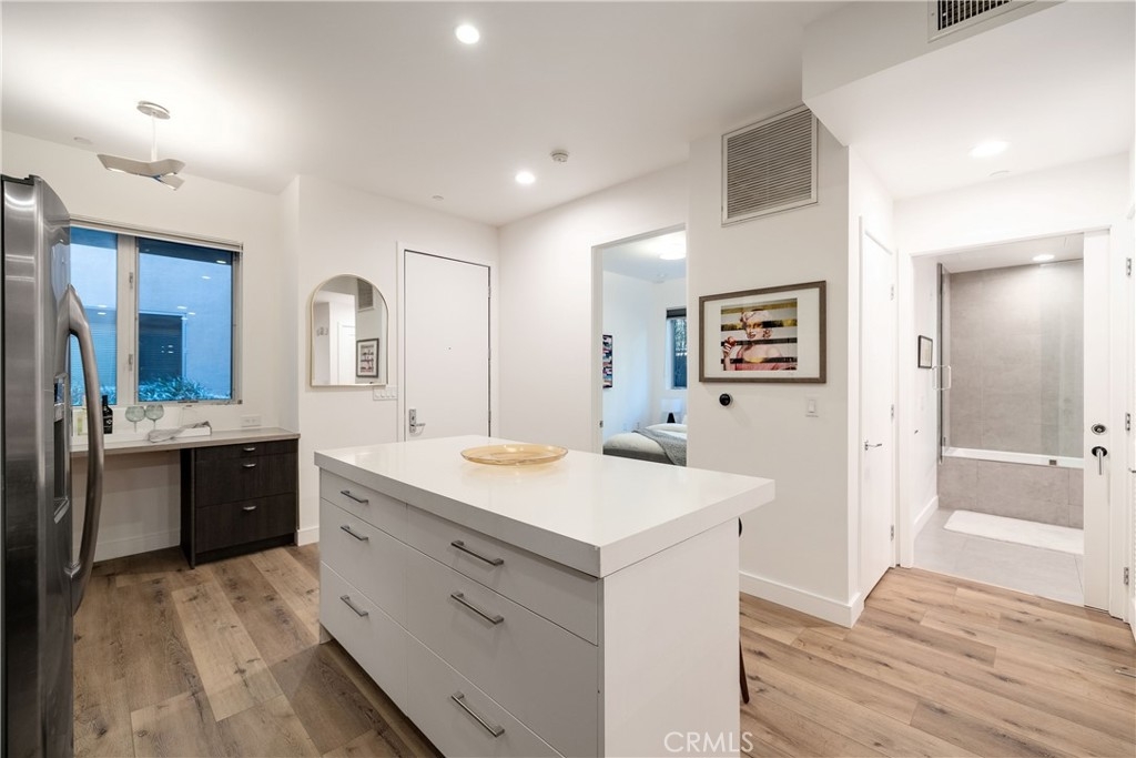 Price Improvement! This updated, sleek modern residence features an open floor plan with high ceilings, hardwood floors, large dual pane windows, security system, and custom closets. The remodeled kitchen boasts Caeserstone countertops, high-quality designer finishes with stainless steel appliances, and plenty of island seating. The bathrooms have been upgraded with Caesarstone countertops and Porcelanosa tiles giving off a true luxury hotel vibe. Relax on a generously sized patio surrounded by lush bamboo for ultimate privacy. Enjoy two tandem secured garage parking spaces, central air conditioning, plus a full-size in unit steam washer and dryer. Luxe amenities in this well-kept contemporary complex include a fitness center, lounge, sundeck and (25) guest parking spots. The Metropol is set in the heart of Hollywood surrounded by palm trees and just minutes from your favorite hot spots. Just a short 5-10 minute walk to Trader Joes, trendy restaurants, the weekly farmer's market, Metro access, and endless iconic Hollywood nightlife. Chic living at its finest!