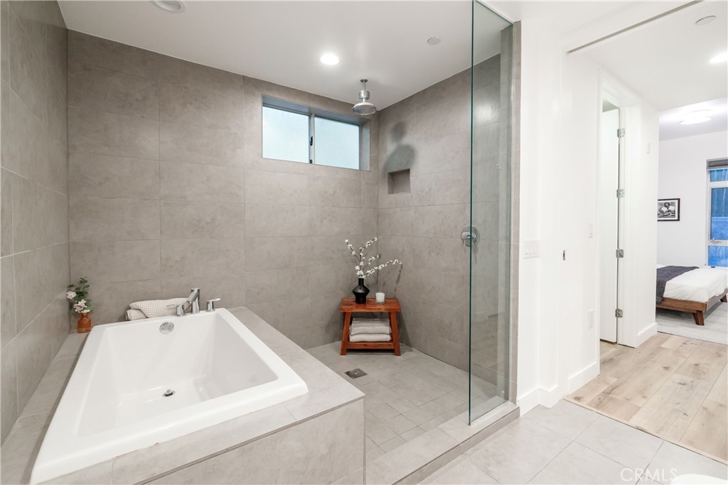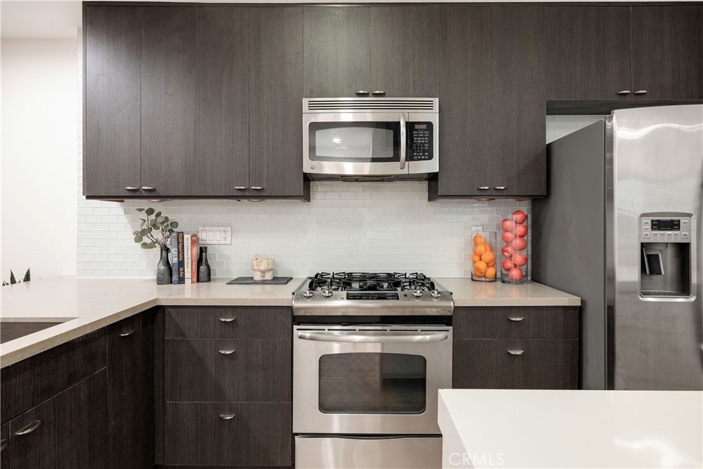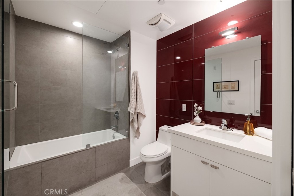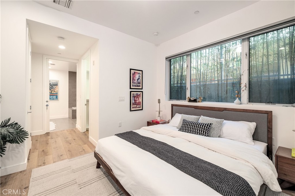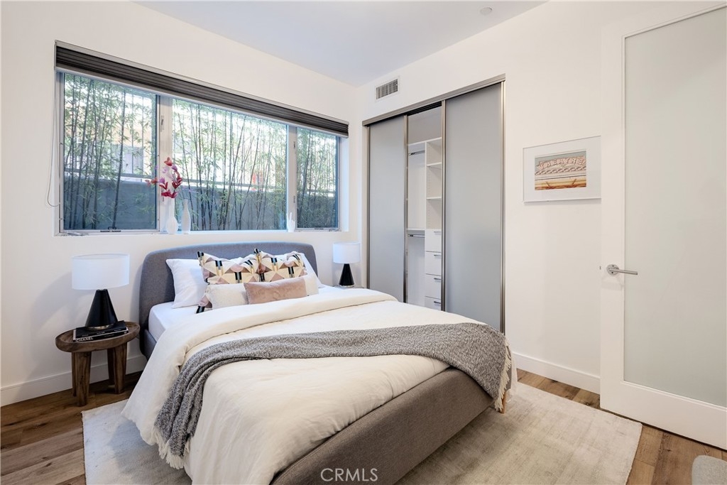 Price Improvement! This updated, sleek modern residence features an open floor plan with high ceilings, hardwood floors, large dual pane windows, security system, and custom closets. The remodeled kitchen boasts Caeserstone countertops, high-quality designer finishes with stainless steel appliances, and plenty of island seating. The bathrooms have been upgraded with Caesarstone countertops and Porcelanosa tiles giving off a true luxury hotel vibe. Relax on a generously sized patio surrounded by lush bamboo for ultimate privacy. Enjoy two tandem secured garage parking spaces, central air conditioning, plus a full-size in unit steam washer and dryer. Luxe amenities in this well-kept contemporary complex include a fitness center, lounge, sundeck and (25) guest parking spots. The Metropol is set in the heart of Hollywood surrounded by palm trees and just minutes from your favorite hot spots. Just a short 5-10 minute walk to Trader Joes, trendy restaurants, the weekly farmer's market, Metro access, and endless iconic Hollywood nightlife. Chic living at its finest!