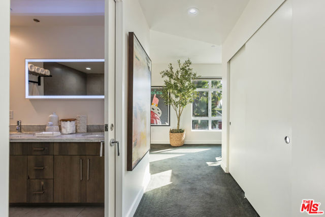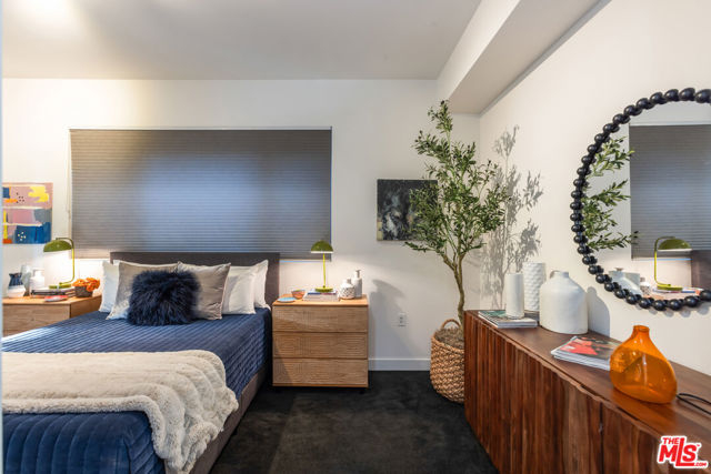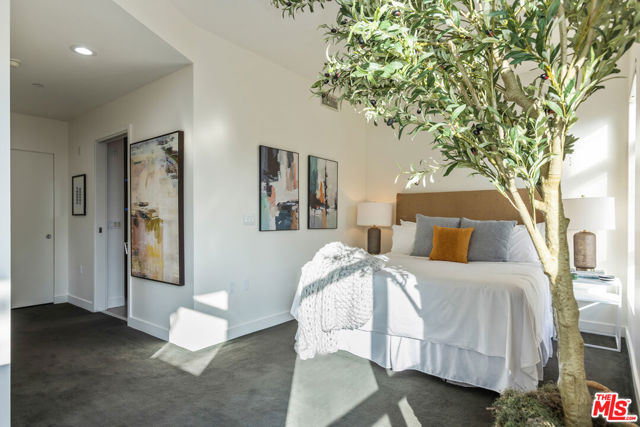 Experience modern sophistication in this sunlit, front-facing corner condo perched in the heart of Hollywood. Boasting high ceilings and windows on three sides, this turnkey unit features a thoughtful open-concept design including two inviting ensuite bedrooms with only one adjoining wall. The airy living area and kitchen highlight gleaming quartz countertops with a breakfast bar, stainless steel farm sink and appliances complemented by ample storage cabinetry. Flowing seamlessly to an expansive outdoor terrace perfect for entertaining, enjoy morning coffee and relax over sunset cocktails with sweeping views of the city. Step into the serene primary suite, arranged for a work-from-home lifestyle, providing privacy for dressing plus a spa-worthy bath graced with dual vanity, rainfall shower and luxurious soaking tub. A Nest thermostat and full-sized laundry ensure comfort and convenience. This well-appointed complex offers upscale amenities: open-air interior walkways, common gathering spaces, state-of-the-art fitness center, controlled remote access with Butterfly entry system, tandem parking equipped with a dedicated EV charger and numerous guest spaces in the secure garage. Tucked on a quiet residential street in close proximity to vibrant Hollywood Blvd, Netflix, Paramount and Sunset-Gower studios, Pantages and Fonda theatres, the Hollywood Palladium, Emerson LA as well as shopping conveniences, swanky nightclubs, trendy cafes, boutique hotels and freeway access. Your Hollywood lifestyle awaits!