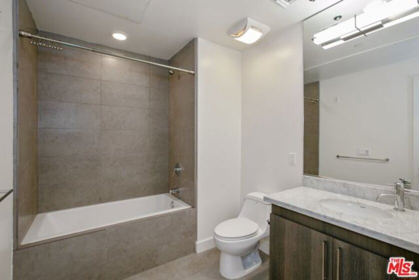 Discover contemporary elegance in this quiet, back-facing corner residence set in the heart of Hollywood. Wrapped in windows on two sides and framed by soaring ceilings, this move-in-ready condo offers an intuitive open floor plan with two comfortable ensuite bedrooms positioned for privacy sharing just one adjoining wall.The spacious living and dining area flows effortlessly into a sleek kitchen appointed with a large counter, a breakfast bar, stainless steel appliances, a farmhouse sink, and abundant cabinetry. Large sliding doors extend the living space onto an oversized terrace ideal for morning coffee and weekend brunches. The tranquil primary suite is thoughtfully arranged for modern living, a generous dressing area, and a spa-inspired bath featuring dual vanities, a rainfall shower, and a luxurious soaking tub. Additional conveniences include full-size in-unit laundry. Residents enjoy a well-curated collection of amenities: open-air interior corridors, communal lounging spaces, a fitness center, secure remote-access entry with ButterflyMX, tandem parking, and plentiful guest parking within the gated garage. Situated on a peaceful residential street just moments from Hollywood Blvd, Netflix, Paramount and Sunset Gower Studios, the Pantages and Fonda theaters, the Hollywood Palladium, Emerson LA, boutique hotels, nightlife, cafes, shopping, and major freeways this is Hollywood living with comfort, sophistication, and convenience at your doorstep. Your next chapter in Hollywood begins here.
