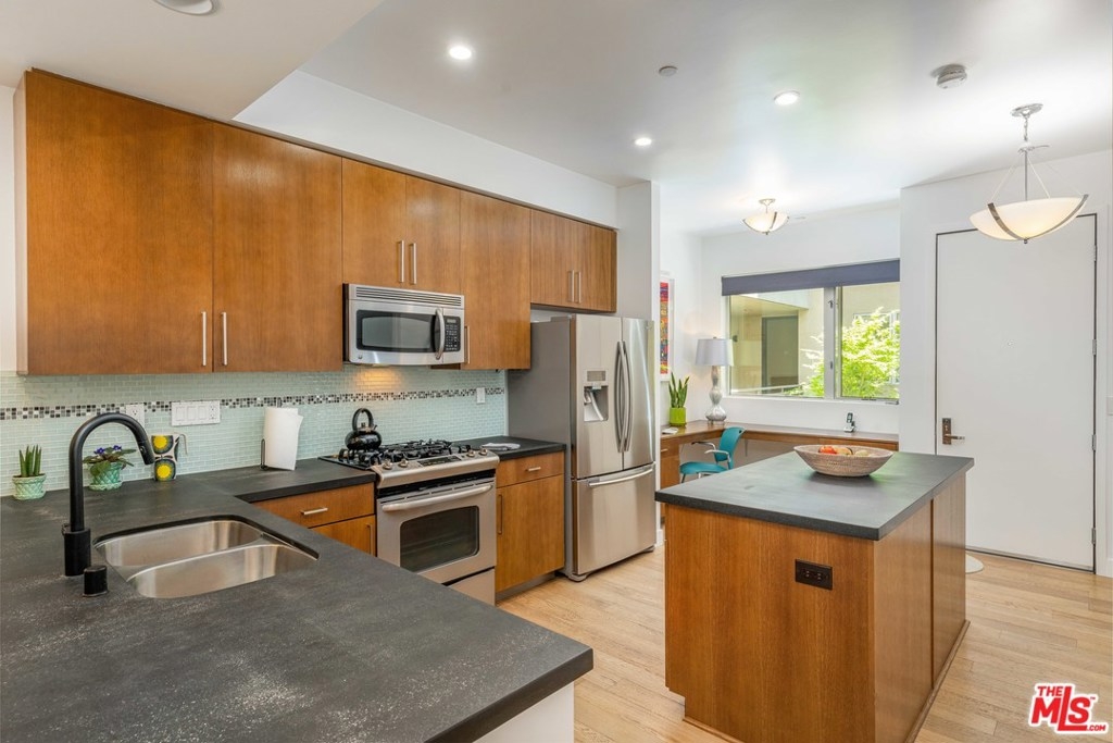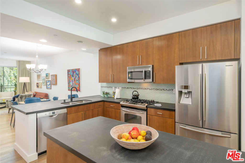 Located in the center of the most happening area in Hollywood, this fresh and stylish condo virtually has it all. The kitchen, dining area, living room, balcony and office area flow seamlessly together, resulting in the perfect open floor plan. Two bedrooms located on opposite ends of the unit create the ideal separation and privacy. Impeccable finishes throughout, including natural oak hardwood flooring, Carrera marble baths and beautiful cabinetry. Master suite has a large walk-in closet and sumptuous master bath with dual vanity, rain shower and soaking tub. Stackable washer/dryer in unit and private balcony are just a few of the other features of this desirable space. Newer construction building with architectural flair features an attractive wood and metal faade for the utmost in curb appeal, an inviting lobby with polished concrete floors, nicely appointed gym, 20 guest spaces, low HOA dues and more.