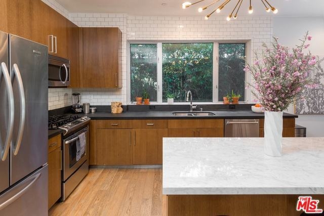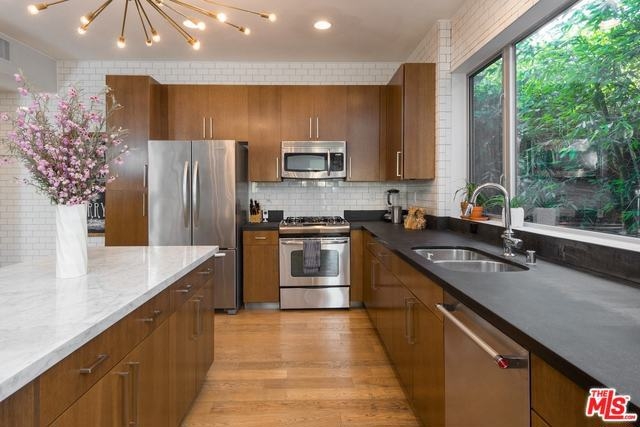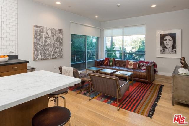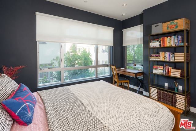 Stunning & sleek corner unit at the Metropol. Rarely available! Extremely spacious and modern floor-plan with gorgeous entertaining kitchen and center island. Living room with floor to ceiling windows viewing a greenbelt of bamboo with no common walls. Slick upgraded finishes and fixtures throughout. Full size washer/dryer in unit included. Master suite with balcony and impressive spa bath featuring a huge walk-in shower, separate tub, dual vanity and large walk-in closet with custom built-ins. Guest bedroom is also spacious with corner window and hall bath featuring built-in storage closet and display shelves. The Metropol was built in 2009 with 41 architectural residences in the heart of new Hollywood (2 blocks from Columbia Square, Neue House, SugarFish, Viacom, Sweet Greens & Paley) with fitness room, lounge/clubhouse, sun deck and controlled access. Walk to the best of Hollywood - just a short stroll to restaurants, nightlife, Equinox, Archlight and more! Hurry, this will go fast!