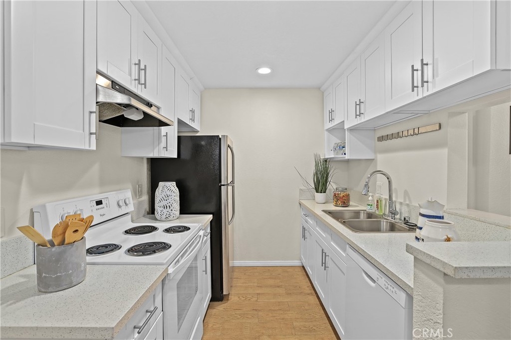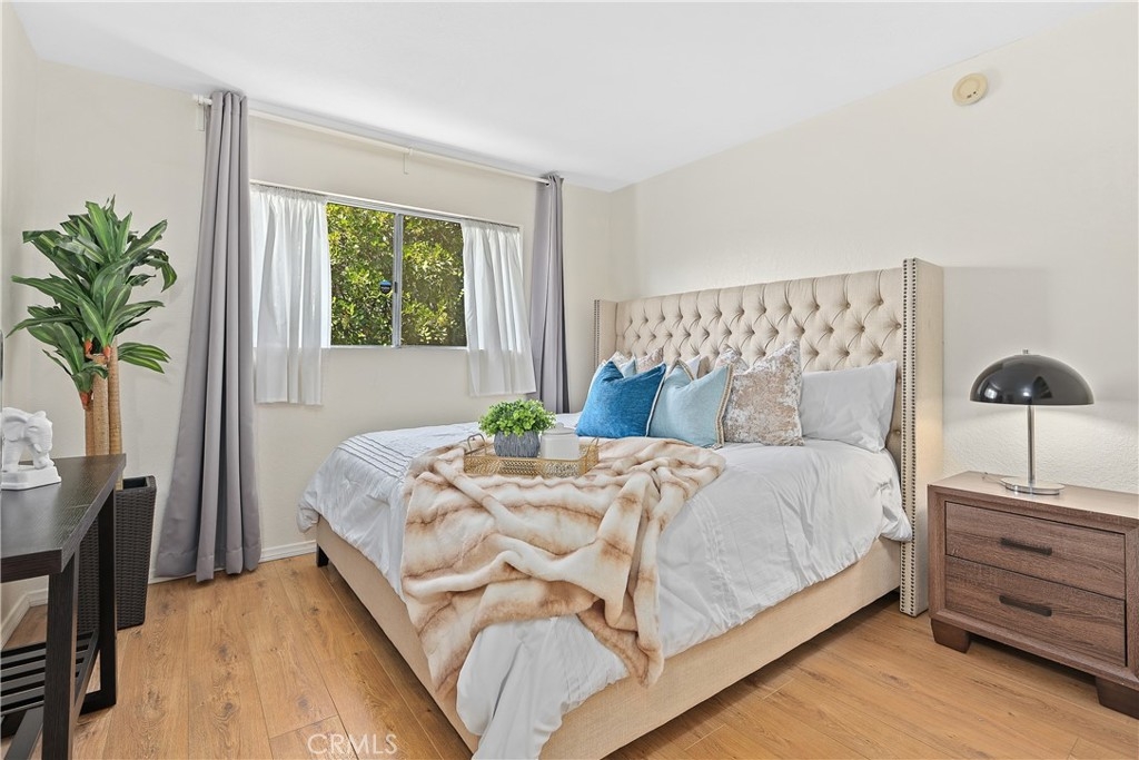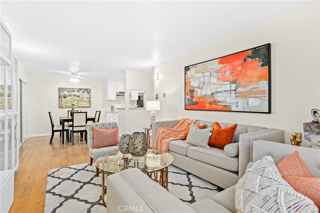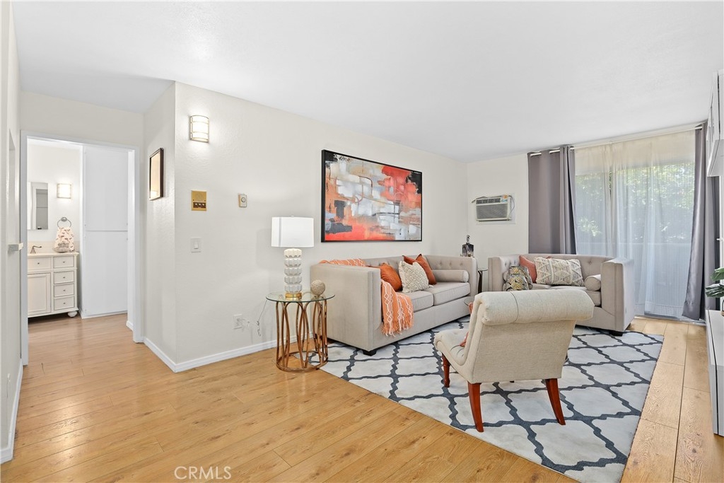 This top-level updated one bedroom and one bathroom with a private balcony is located at the gated complex in the heart of Hollywood. The bright living room has sliding doors to the private balcony to enjoy west views of the Hollywood Hills. The dining area is open to the kitchen offers wall to wall closet. Remolded open kitchen highlighted by quartz countertop and newer cabinets. One bedroom offers a spacious walk-in closet. Updated bathroom provides newer vanity tiles in the shower wall. Laminated flooring throughout. One security gated assigned parking space. The unit is easy access to the elevator to the garage, community laundry room and fitness center. HOA dues include water, trash and, surveillance camera and exterior maintenance. Grate location is adjacent to West Hollywood, a block off Sunset Boulevard; minutes away from Roosevelt Hotel, Kodak Theater, Chinese Theater, Runyon Canyon hiking trail, Studios, night clubs, boutiques, best restaurants & coffee houses!