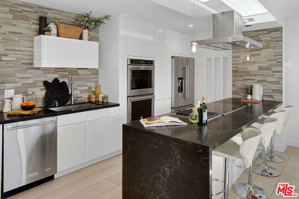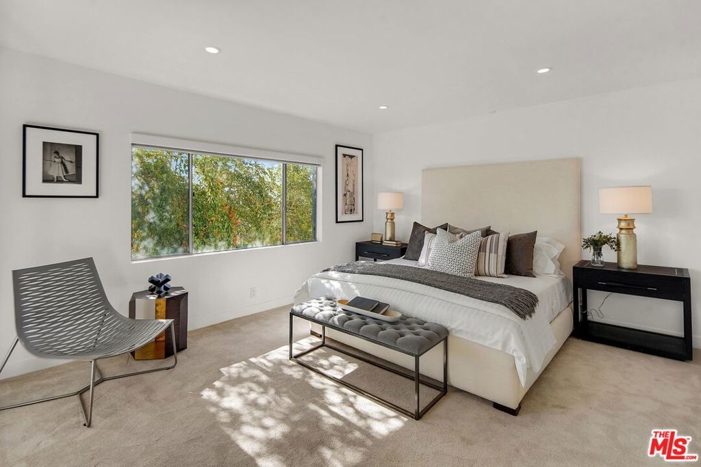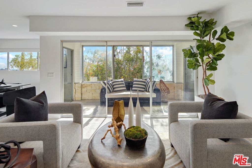OFFERS DUE THURSDAY FEBRUARY 3rd AT 5:00PM. Stunning, modern, remodeled rear corner condo with views in an amazing location between West Hollywood and Hollywood! Modern meets ZEN in this spacious unit with3 BR/2BA plus an office. Incredibly private and quiet property that feels like a single family home as only one common wall. Open living/dining/great room with an enclosed balcony with gorgeous southern views. Magazine worthy cook's kitchen with stainless appliances, Caesarstone countertops, breakfast bar and ample cabinet space. Generous Master Suite complete with large walk-in closet and balcony overlooking the pool and view of hills. Master spa like bathroom has large walk-in shower and dual vanity. Two other good size bedrooms and an office round out the home. Other features include: Washer and dryer in unit, ample storage space, side by side parking, EQ Insurance, secured entry and gated parking. Classic Mid-Century Modern building with a beautiful, serene pool. Close proximity to restaurants, shopping, Sunset Blvd, Runyon Canyon, Beverly Hills and a short drive to studios. Very special and private home. Don't miss this special retreat!