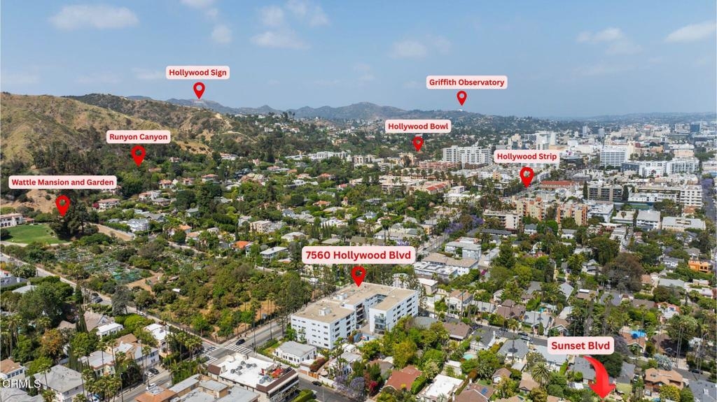 PANORAMIC VIEWS of Los Angeles in rare top-level unit in Hollywood! This 2 bedroom, 2 bath unit is located in the best part of the building with views of LA in every room. Retreat to this peaceful sanctuary as you walk into this spacious open space with abundant natural light in every room and a large balcony to enjoy the sunrise and sunset every day. Freshly painted, this home offers plenty of closet space, in-unit laundry room, large kitchen pantry, new electrical panel, new dishwasher, new built-in microwave, secure gated parking with your own side-by-side spots, plus an outdoor pool for those relaxing days. Located in the heart of Hollywood with the perfect blend of city life and nature, this sought after community is just minutes from shopping and restaurants on Sunset Strip, Hollywood Bowl, and iconic night life and entertainment. Enjoy nature with Runyon Canyon and famous Wattles Mansion and Park in your backyard. Don't miss out on making this spectacular home yours!