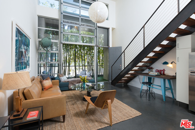 Introducing this modern townhome-style loft designed by award winning architect Pugh Scarpa AIA, located in the heart of the Hollywood 2.0. This unit is a true Urban Oasis, sophisticated and private with a galleryÂÂ-like living room boasting 19 ft ceilings and sleek concrete floors. A key feature of this fun and dynamic space is a large glass "garage door"; when closed it offers ample privacy (tinted glass) and serenity; when opened you can enjoy the breeze and the private patio becomes an extension of your living room. A bright & airy mezzanine on the second level makes for a perfect work space, cozy den or can be used as a bedroom. On the top level a master bedroom retreat awaits you with floor to ceiling windows opening up to the Hollywood Sign. The conveniences of this area include Equinox, Trader Joe's, Neuehouse and the Arclight Theater. Not to mention easy access to Metro Red Line and the 101 freeway. Come and make yourself at home!