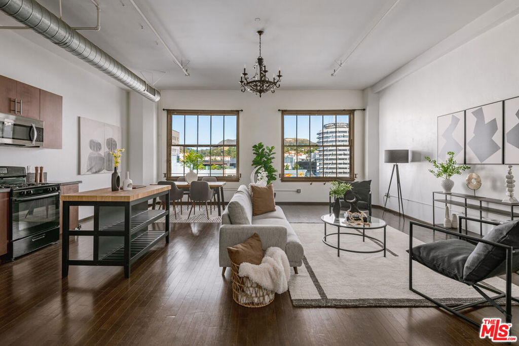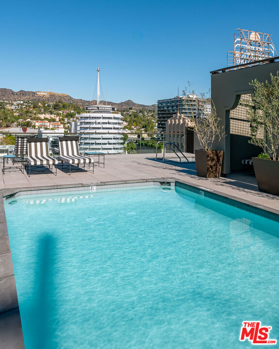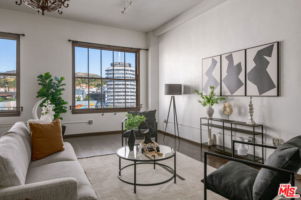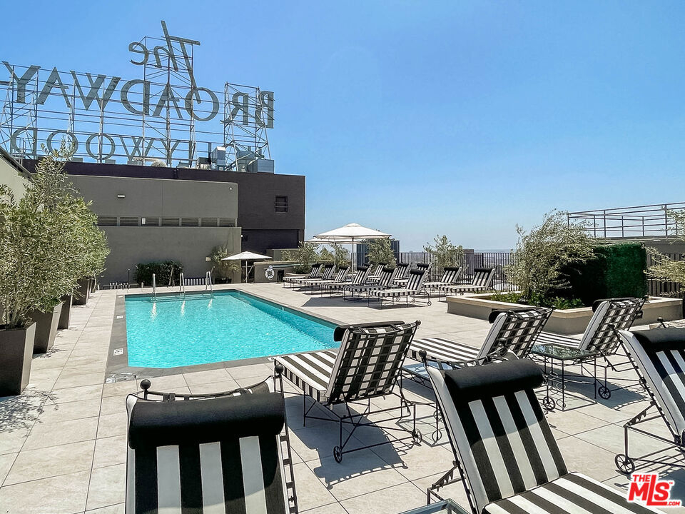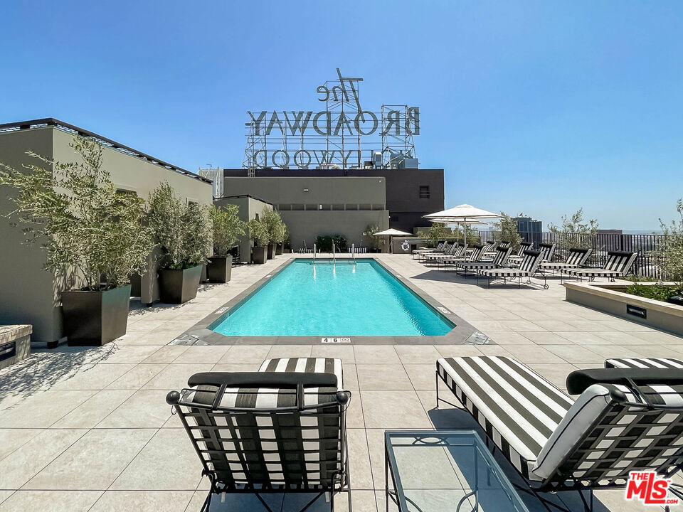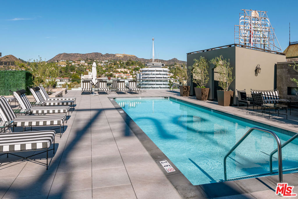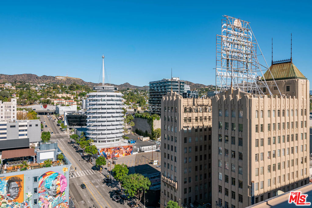 Welcome to the Broadway Hollywood #707, an exquisite live/work loft space nestled in the heart of Hollywood! This stunningly restored 1920's residence, designed by Kelly Wearstler, offers the epitome of luxury living, combining spaciousness, breathtaking views, and a wealth of amenities. Upon entering, be greeted by soaring 12' ceilings that create an atmosphere of grandeur and sophistication. Spanning across 1,260 square feet, this home provides ample room for relaxation and entertainment. Prepare to be captivated by the unparalleled views of the iconic Capitol Records building, Hollywood Hills, and the legendary Hollywood sign while peering through your over-sized windows! The gleaming hardwood floors exude warmth and elegance. The bathroom boasts granite countertops, double vanities, and a large sinking tub - leaving you with that "resort-like" feeling. Enjoy your open concept-kitchen w/stainless steel appliances, central air and heat, in-unit washer & dryer, and a large custom bedroom closet. As a resident of The Broadway Hollywood, you will enjoy an array of amenities designed to enrich your lifestyle. The 24 hour concierge service ensures convenience and security, while valet parking offers a seamless arrival and departure. Stay active in the well-equipped gym and soak up the California sun while at the famous, recently renovated rooftop pool w/ cabanas! Immerse yourself in the vibrant surroundings of Hollywood with its dining, entertainment, and cultural offerings just moments away! Experience the pinnacle of condo living, where luxury, views, and amenities converge in one of Hollywood's most architecturally significant buildings in the center of it all! Schedule your private viewing today! Mills-Act status offers significant property tax savings. Unit is staged.