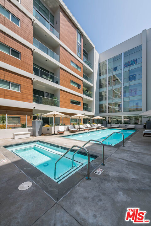 Amazing opportunity to own at "The Hollywood" for under $700k. Designed by the award winning Architect Steven Kanner, this architectural building features 24 hour concierge, pool & spa with BBQ, well equipped fitness center and billiard room. Step into this private 1st floor unit with open floor plan, walnut floors, high ceilings and in unit laundry. The kitchen features Pedini Cabinetry and Terrazzo floors, Hansgroe & Duravit Bath Fixtures, Jenn-Air Appliances and Fleetwood Windows. Each bedroom is ensuite and features polished concrete floors. 2 tandem parking spaces plus plenty of guest parking, all in a controlled access building!
